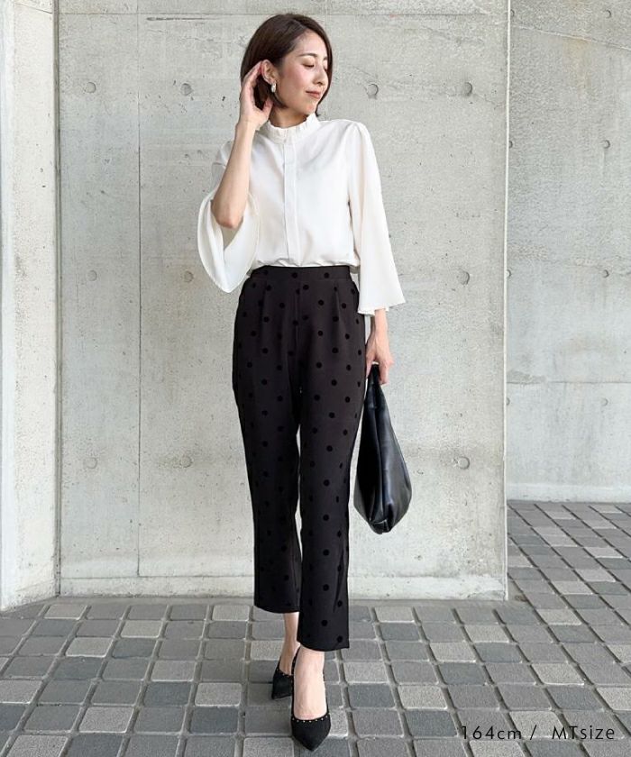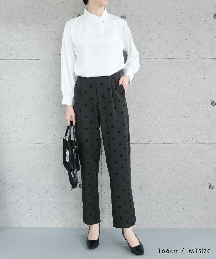 • エレガントな着こなしが完成するドット柄テーパードパンツ