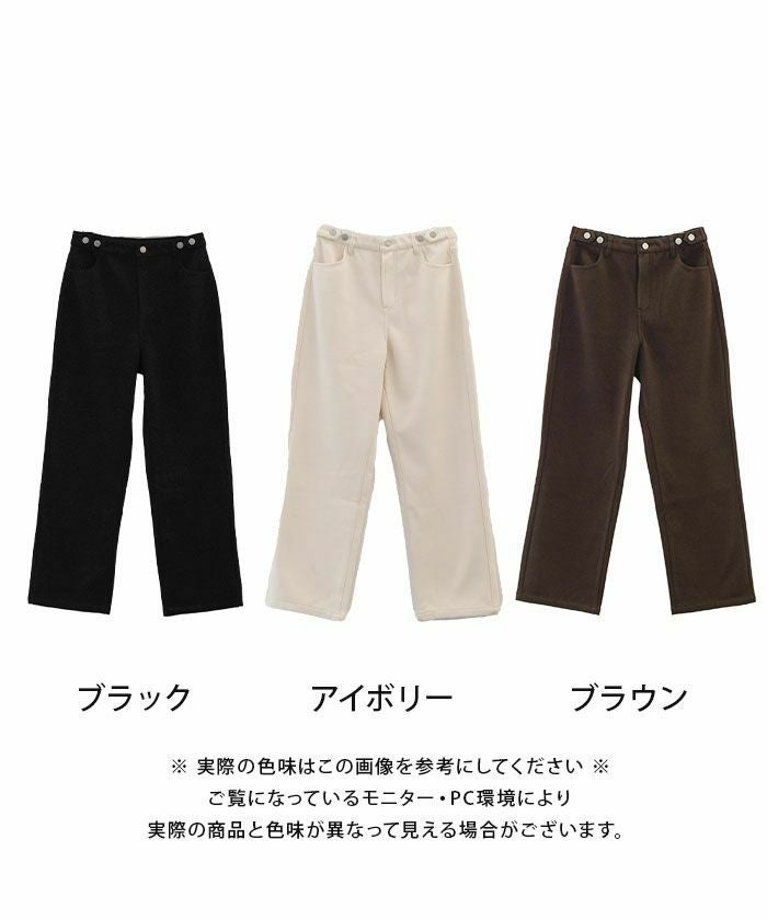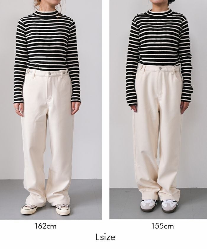 寒い季節にうれしい、裏フリース仕様のストレートパンツ。
