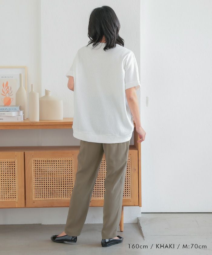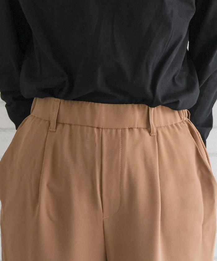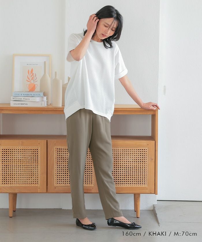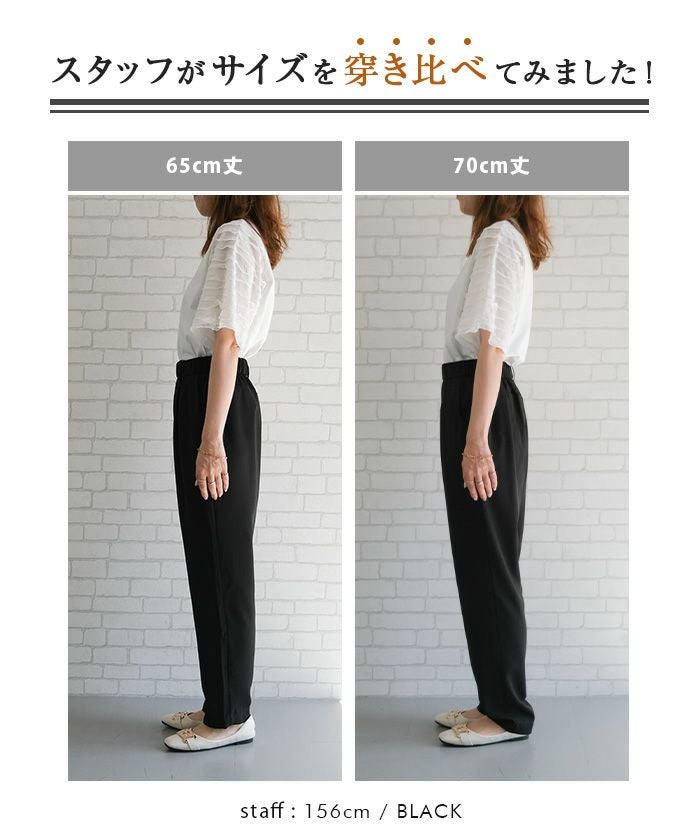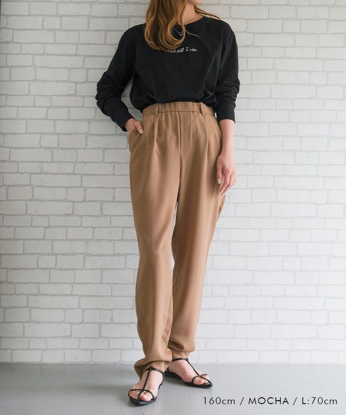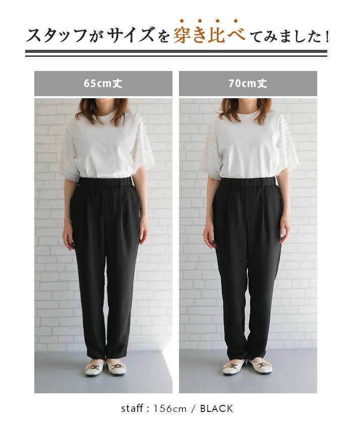 テーパードシルエットが脚のラインを美しく見せ、カジュアルからオフィススタイルまで幅広く活躍するアイテムです。