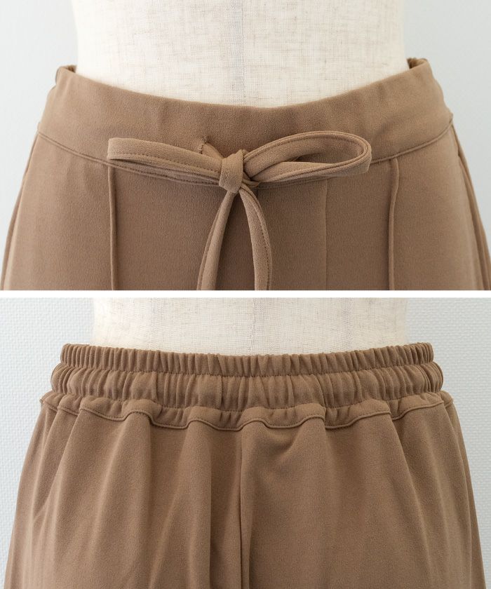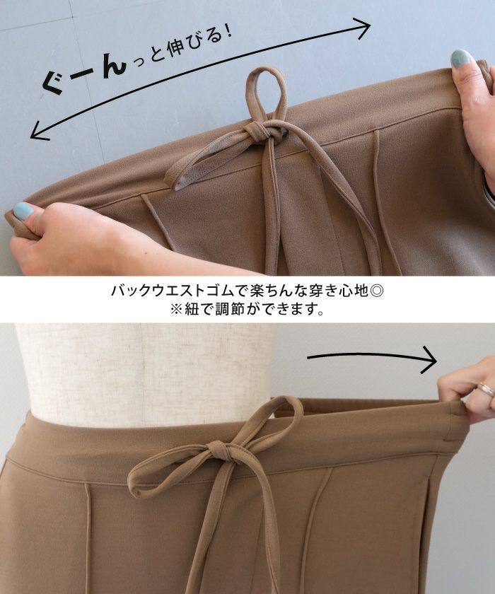 ウエストはゴムで楽ちんながらすっきりシルエット。