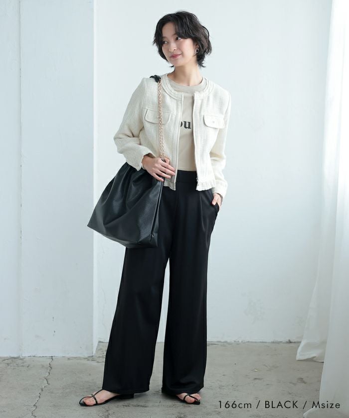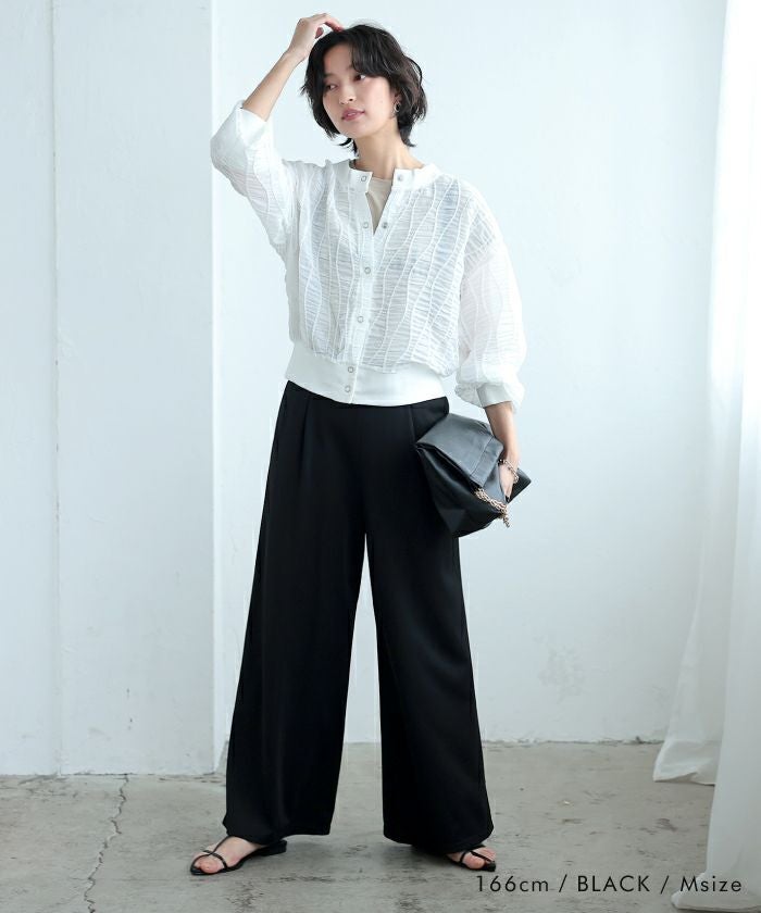 しなやかな落ち感と適度なハリ感があり、カジュアルすぎず大人っぽい印象に。