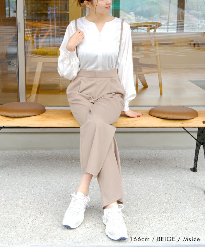 春夏はTシャツやタンクトップと、秋口はブラウスや長袖インナーと合わせて季節感を演出。