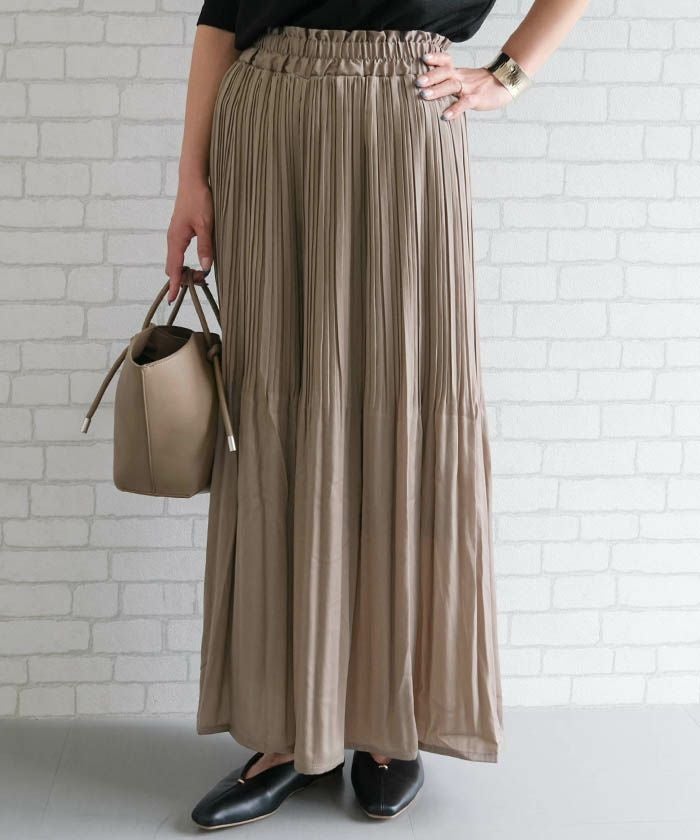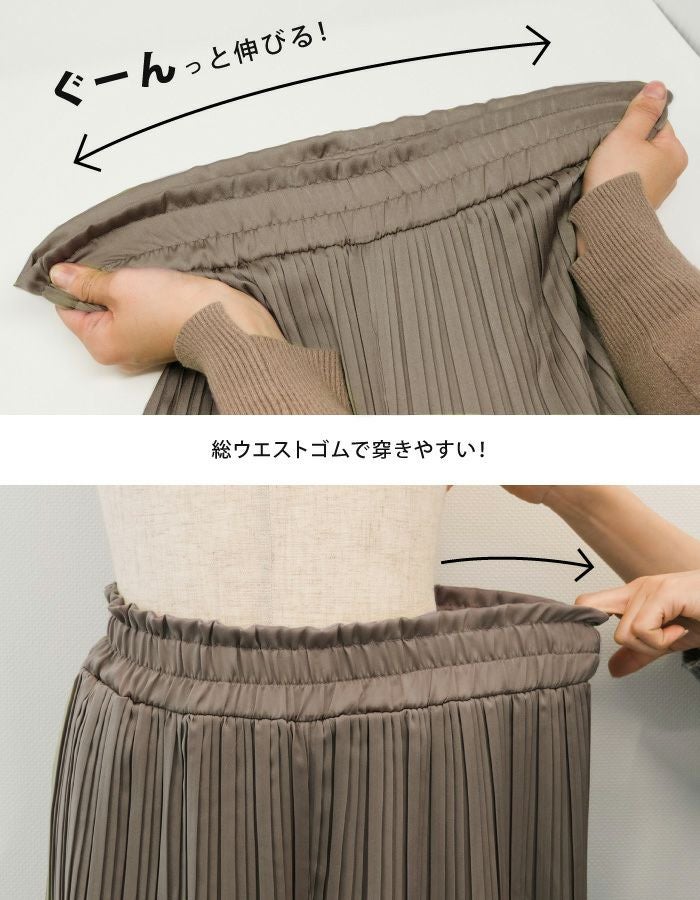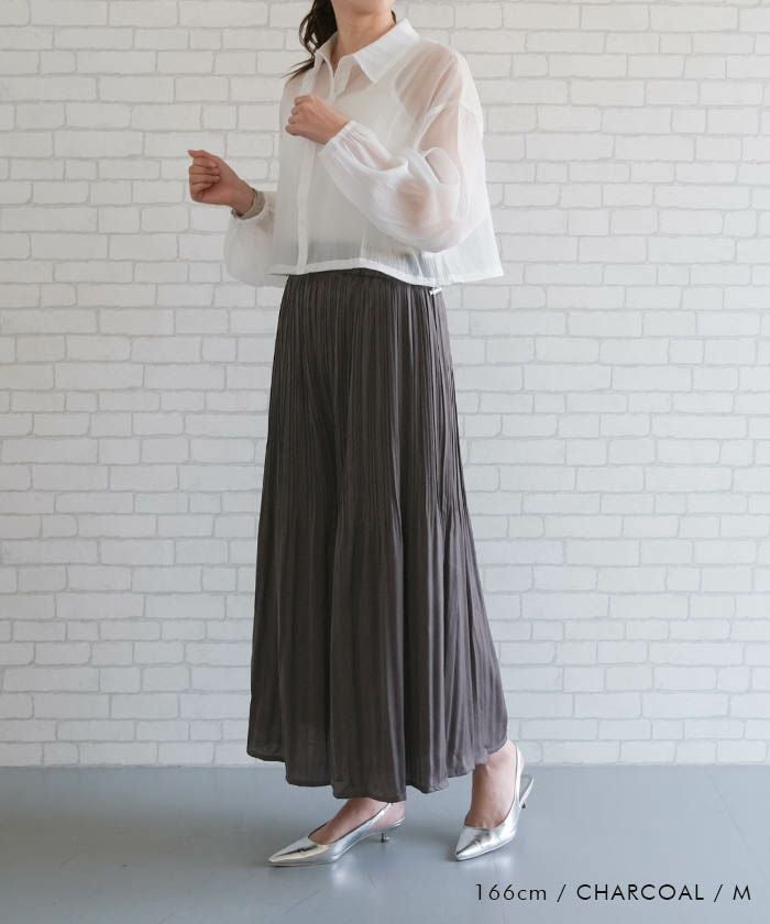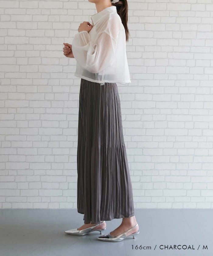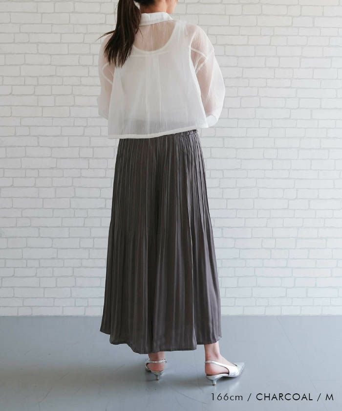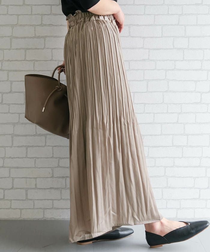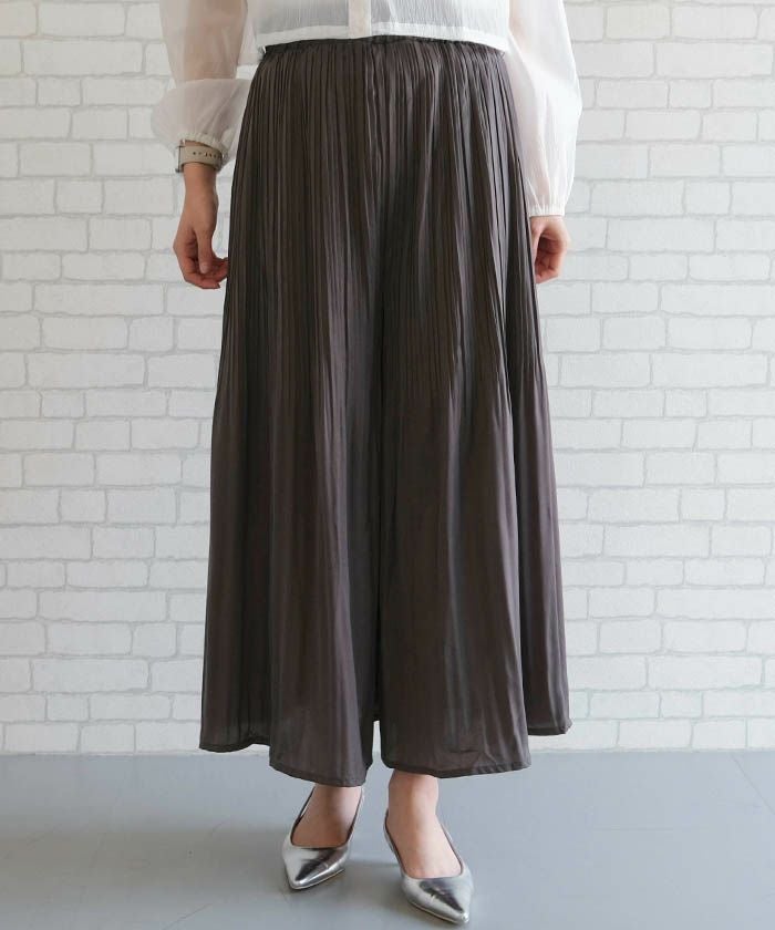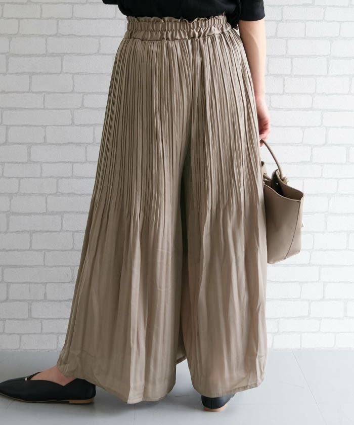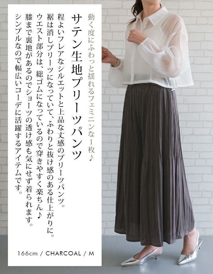 • 動く度にふわっと揺れるフェミニンな1枚♪サテン生地プリーツパンツ
