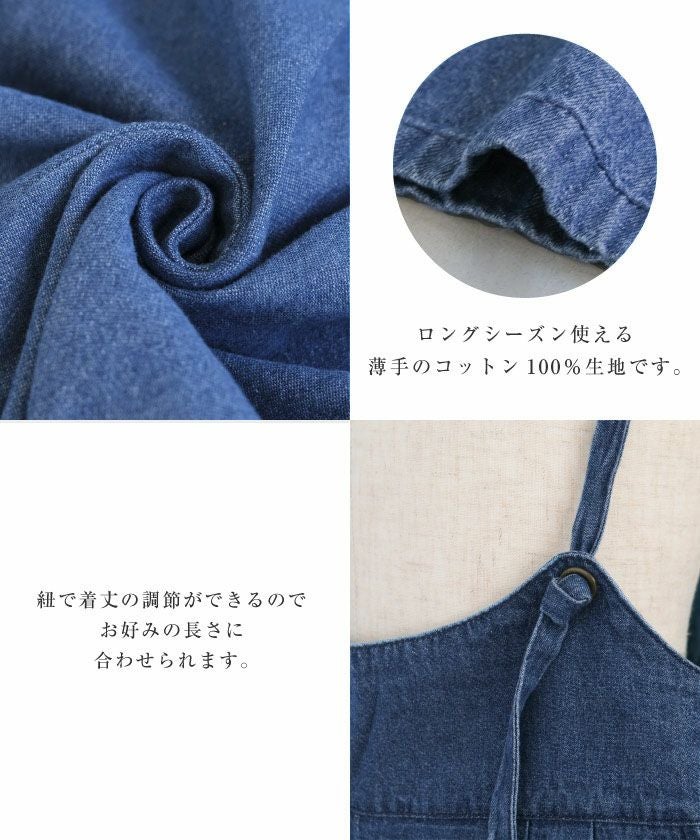 • ロングシーズン使える薄手のコットン100%生地のデニムサロペット