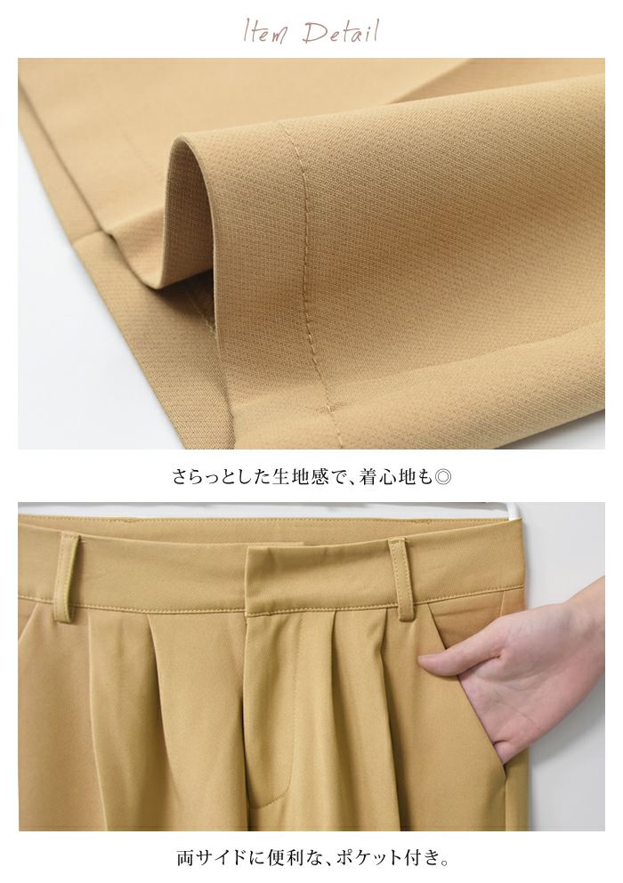 • 綺麗なワイドシルエットが魅力的なセンタープレスワイドパンツ。