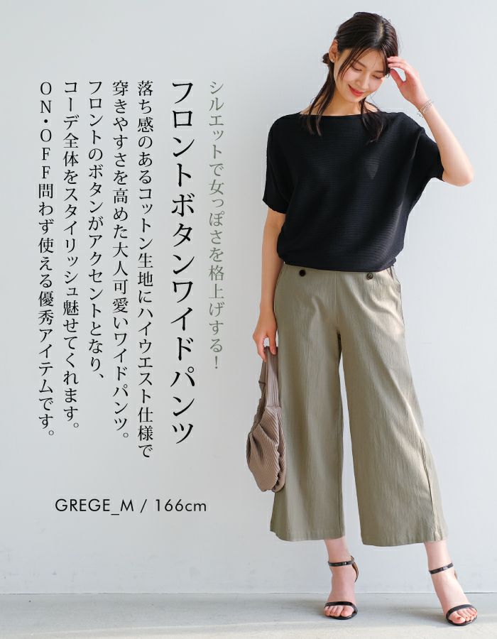 • シルエットで女っぽさを格上げする フロントボタンワイドパンツ。