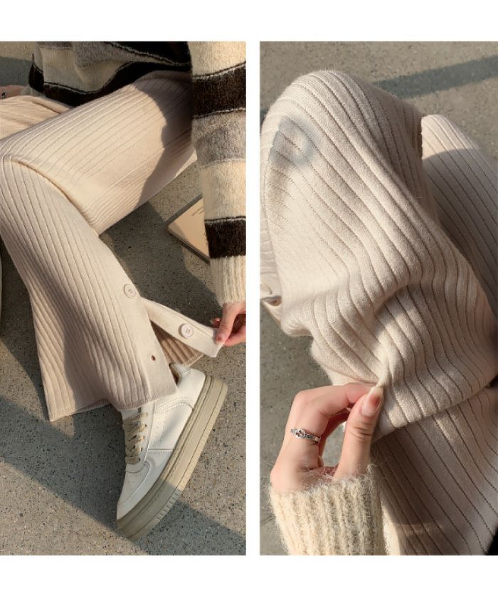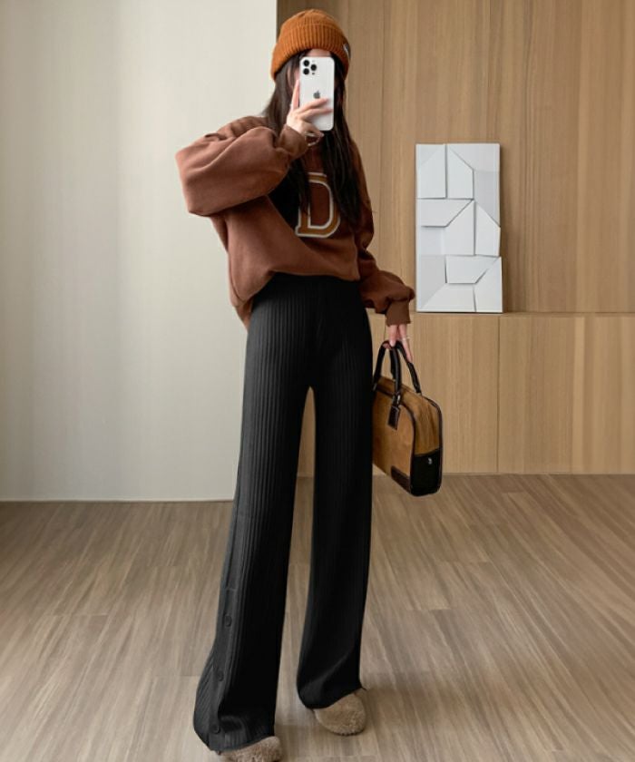 • ストレッチ性のあるノンストレスな穿き心地!裾サイドボタンニットパンツ