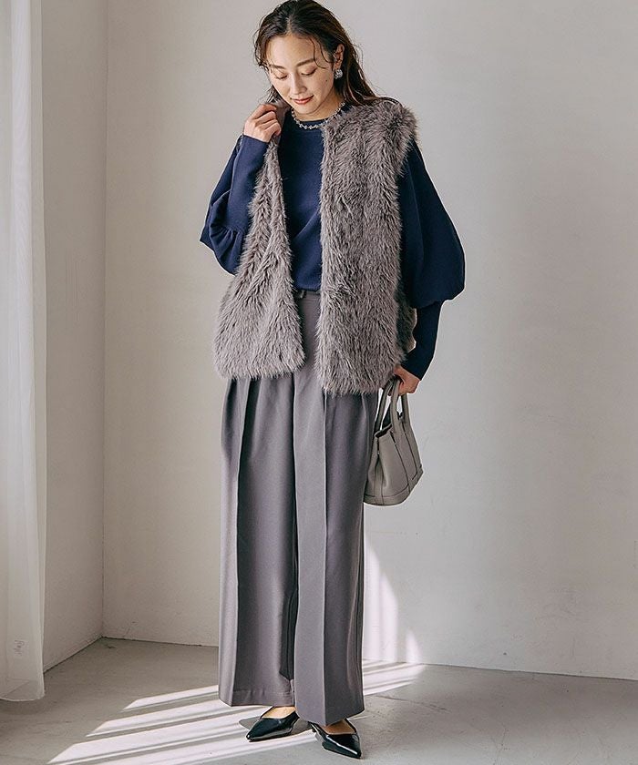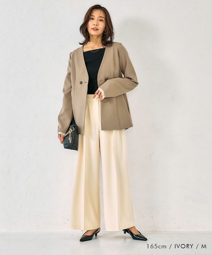 脚をすらりと長く見せるシルエットは、きちんと感がありながらもリラクシーな雰囲気を兼ね備えています。