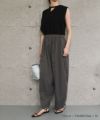 ゆったりとしたシルエットと上品な素材感が魅力のバレルレッグパンツ。