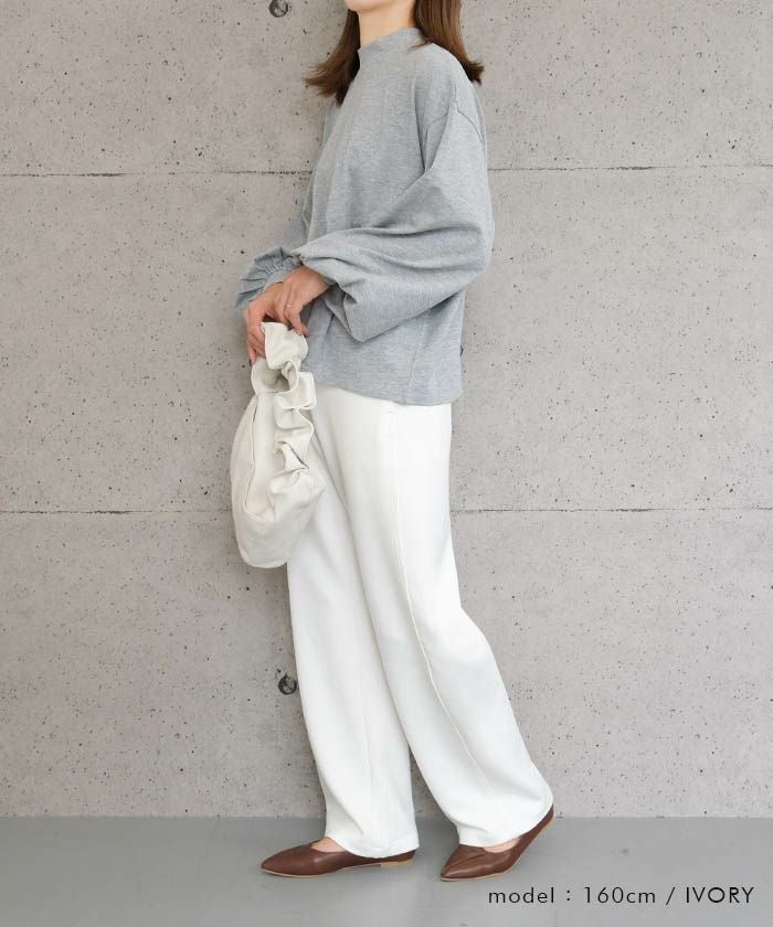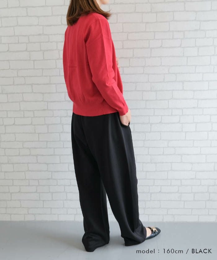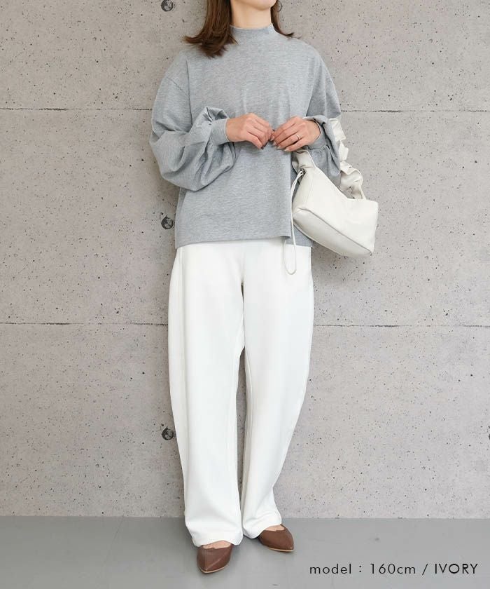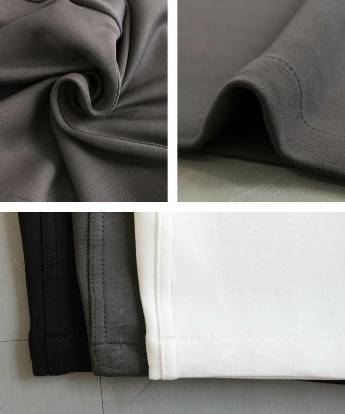 一見スウェットのようでリラックスした見た目ですが、滑らかな重みの落ち感が大人っぽさを保ってくれます。