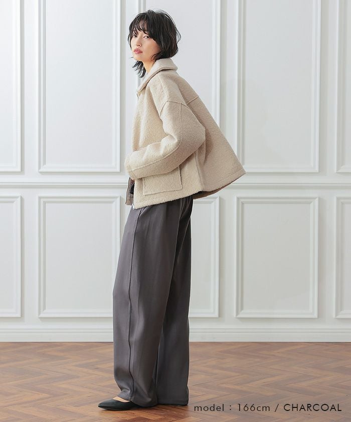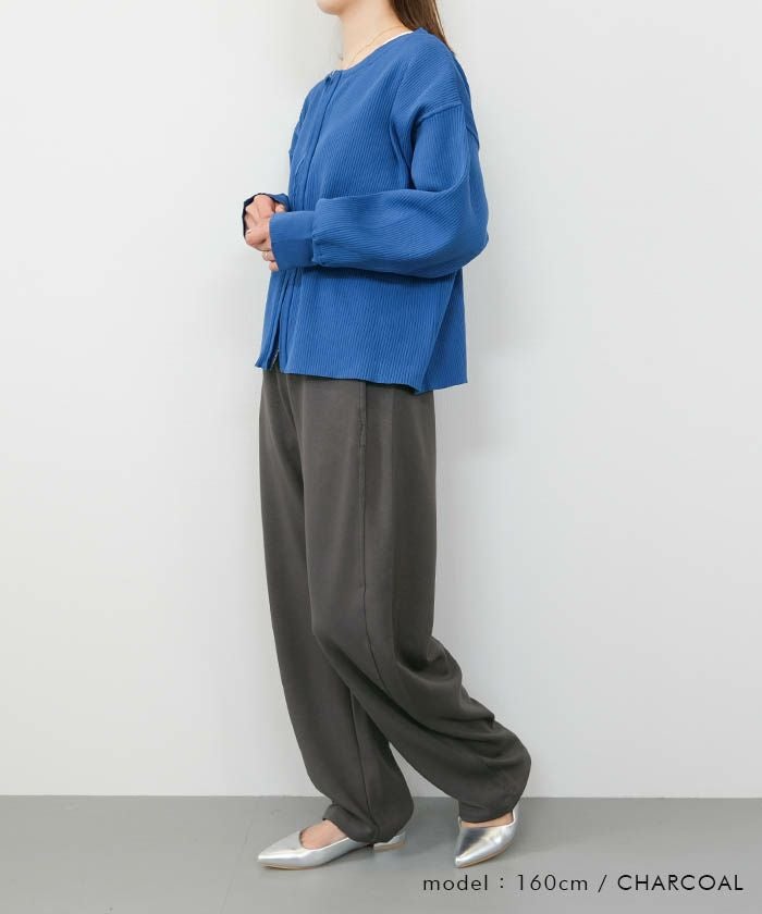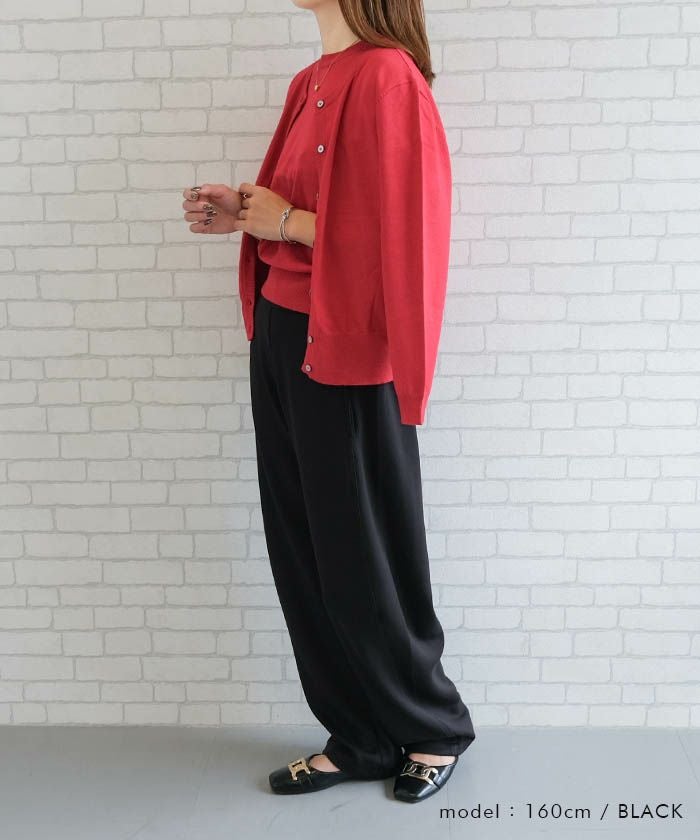 とろみを感じる素材感がゆったりシルエットでもボリュームを調整してくれます。