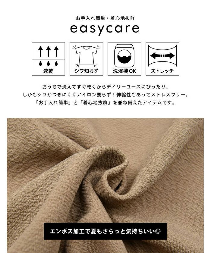 さらっとした肌ざわりのエンボス加工素材は、肌に張りつきにくく快適。