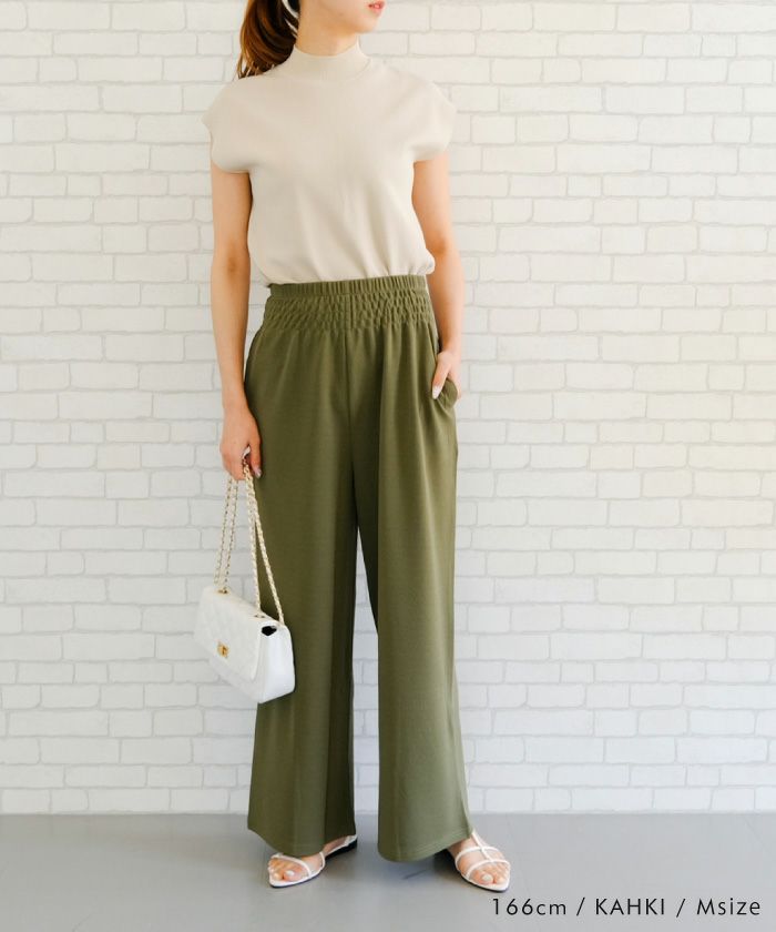 ウエストゴムがありがたく、楽。そして、高見えするのでいつでも着られます。