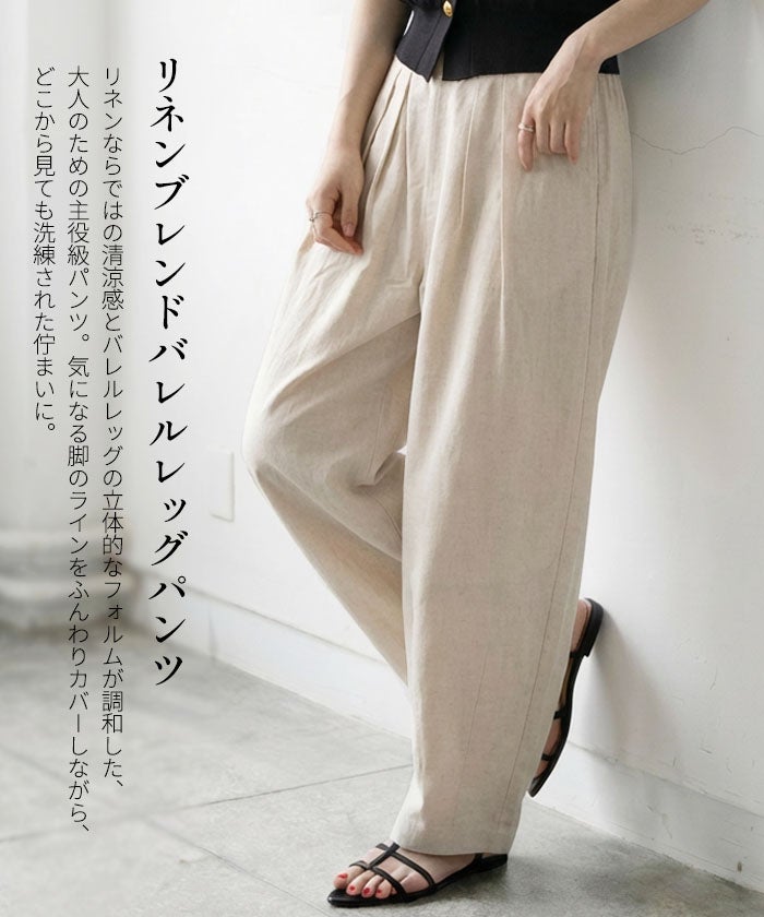 リネンブレンドバレルレッグパンツ 春 夏 秋 M L ≪ゆうメール便配送30・代引不可≫ |アクアガレージ aquagarage