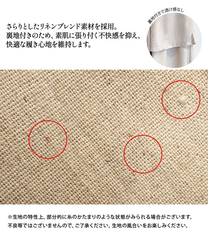 リネンをブレンドした、さらりとした肌触りの生地を使用。