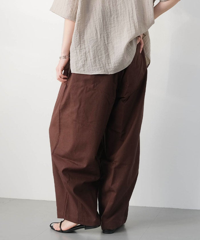 ゆったりとしたシルエットながら、裾にかけて緩やかに丸みを持たせたバレルレッグデザインが特徴のパンツ。