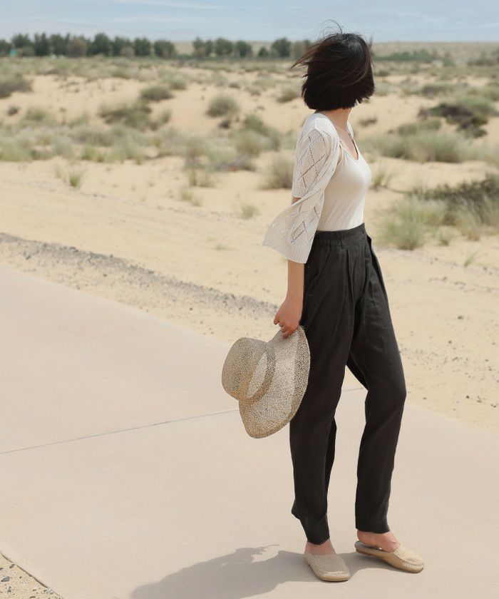 送料無料 ボックスタックリネンライクパンツ レディース M L ≪ゆうメール便配送30・代引不可≫ | アクアガレージ aquagarage