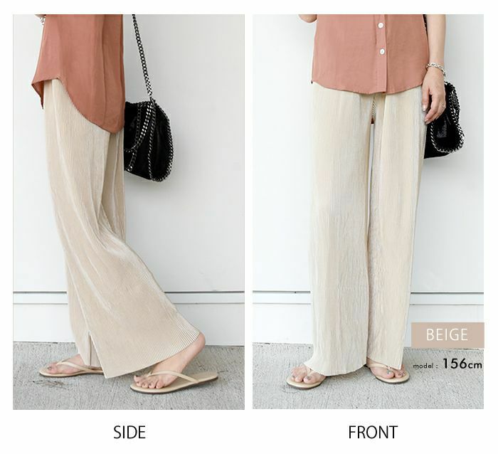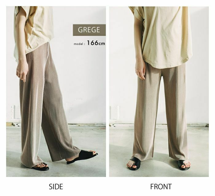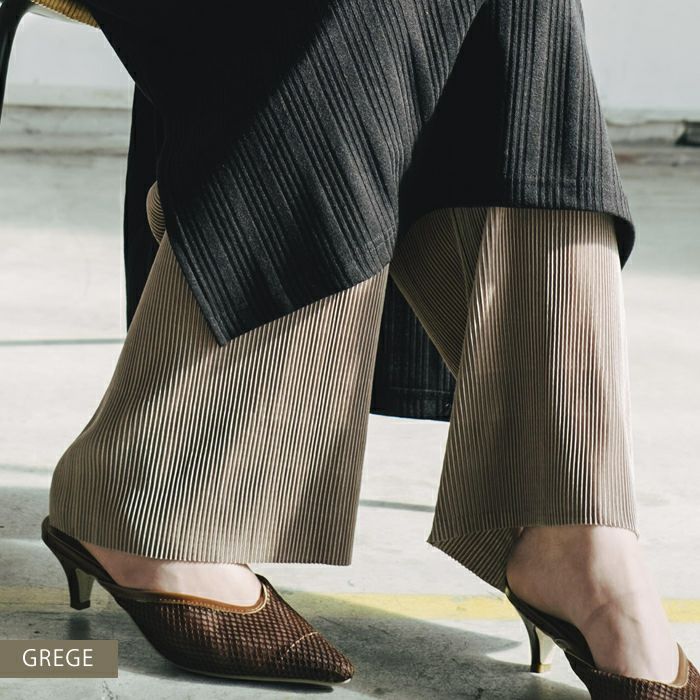 細かいプリーツがIラインを引き立ててくれスタイルアップも叶います。