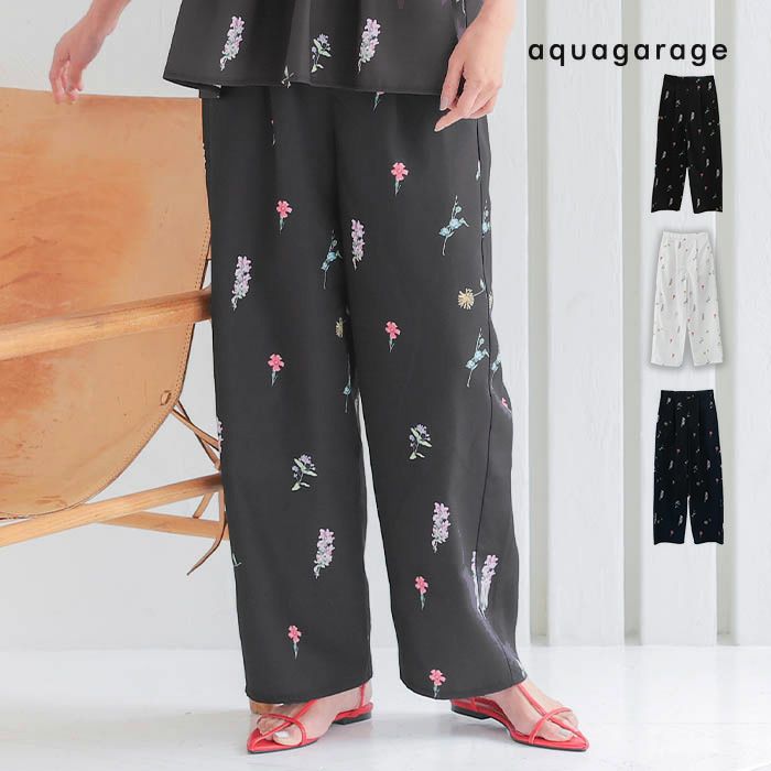 送料無料 花柄ワイドパンツ レディース 春 夏 秋 M ≪ゆうメール便配送30・代引不可≫ |アクアガレージ aquagarage