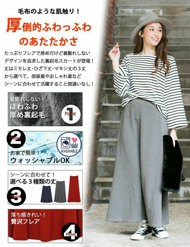 送料無料 選べる3丈裏起毛スカート ミモレ丈 ひざ下丈 マキシ丈 | アクアガレージ aquagarage