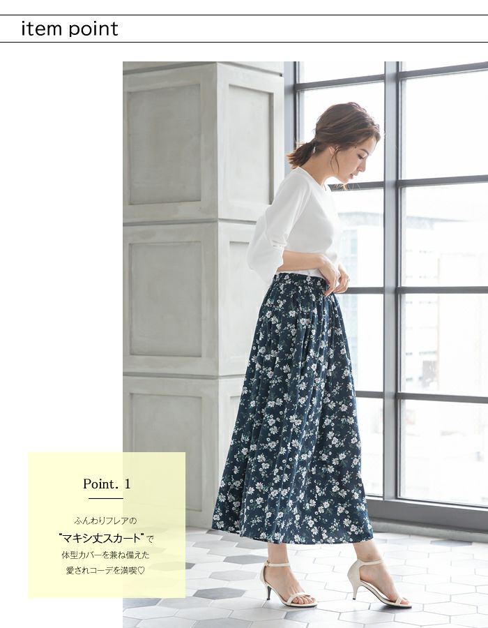 【最終値下げ価格】無地or花柄 マキシ丈ギャザースカート | アクアガレージ aquagarage