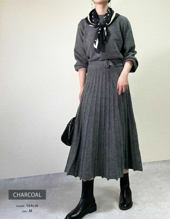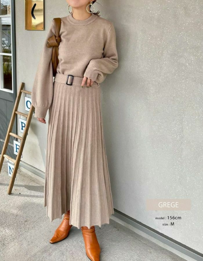 送料無料 ベルト付きニットセットアップ レディース 秋 冬 長袖 3点セット | アクアガレージ aquagarage
