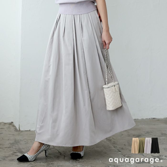 送料無料 ウエストタックギャザーフレアマキシスカートレディース 春 夏 秋 M | ≪ゆうメール便配送30・代引不可≫アクアガレージ aquagarage