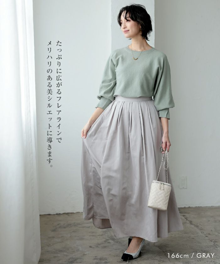 送料無料 タックフレアスカート レディース 春 秋 M L 大きいサイズ ≪ゆうメール便配送30・代引不可≫ | アクアガレージ aquagarage