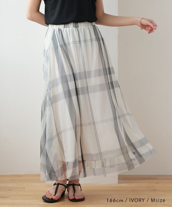 送料無料 チェックプリントチュールギャザースカート 春 夏 秋 M L |≪ゆうメール便配送30・代引不可≫アクアガレージ aquagarage
