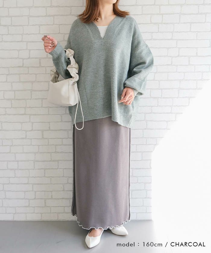 裾バイカラーリブニット裏起毛ナロースカート レディース 秋 冬 | アクアガレージ aquagarage