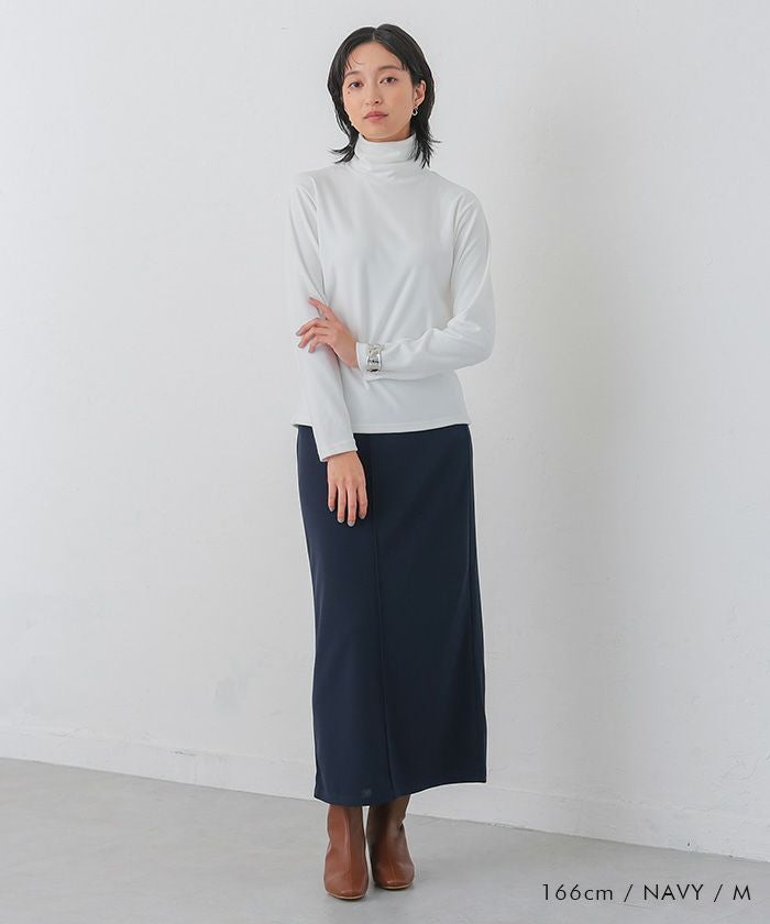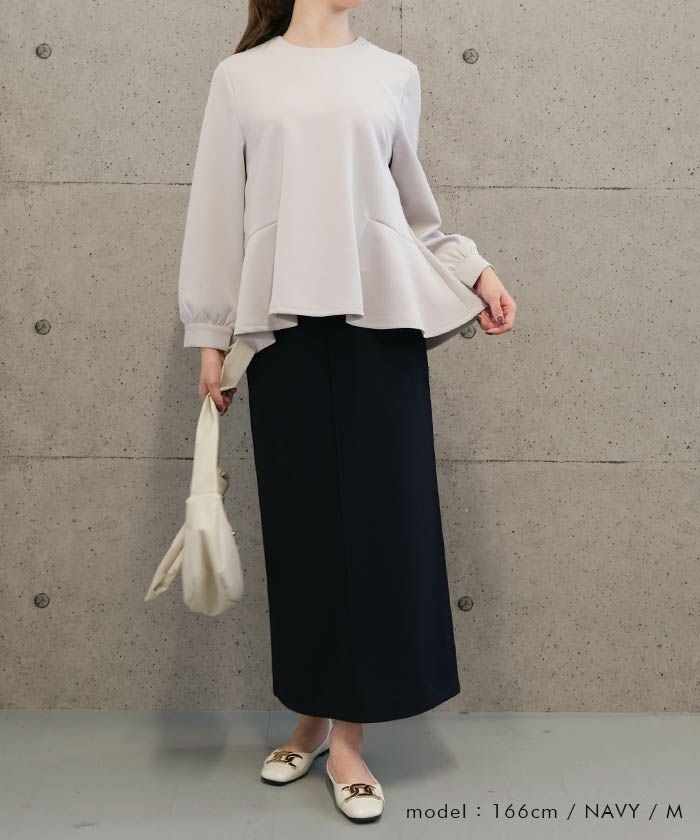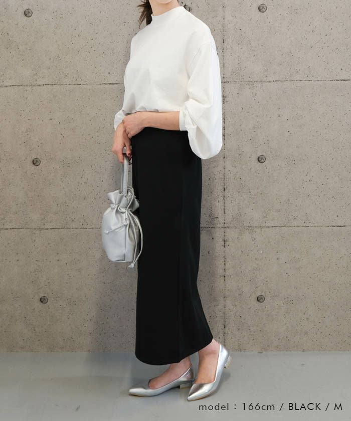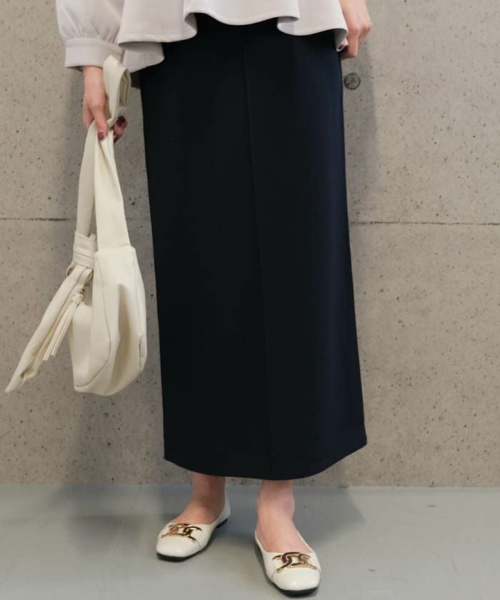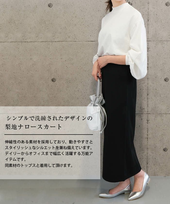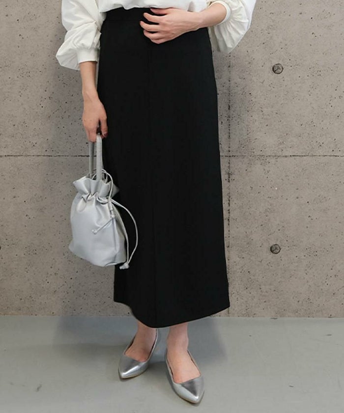 • シンプルで洗練されたデザインの梨地ナロースカート
