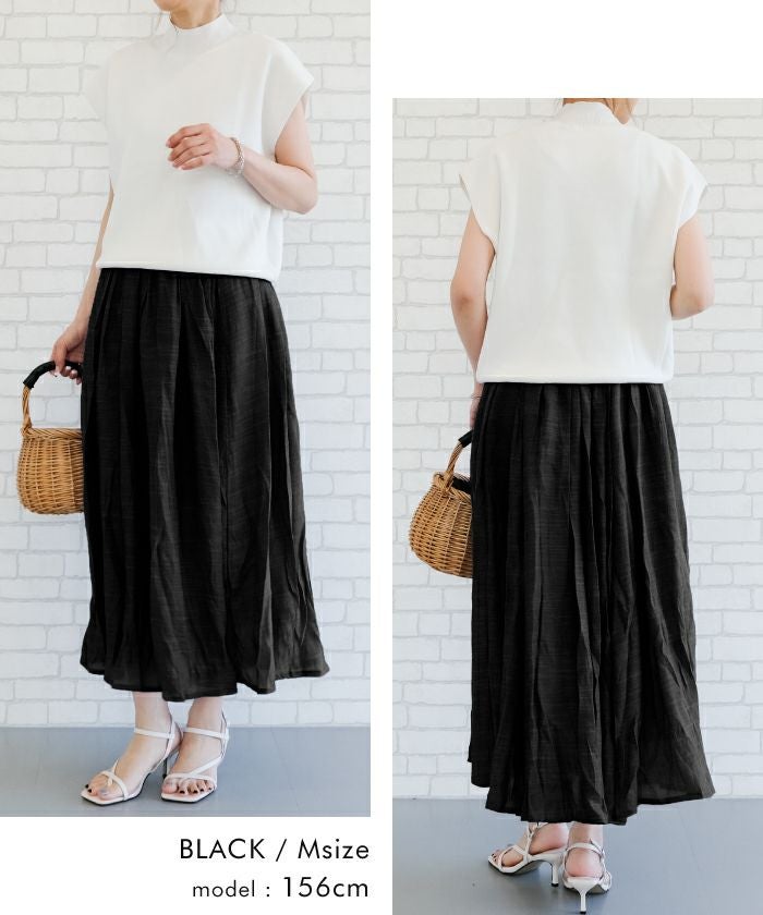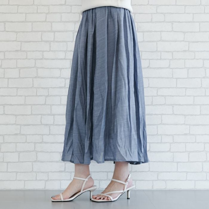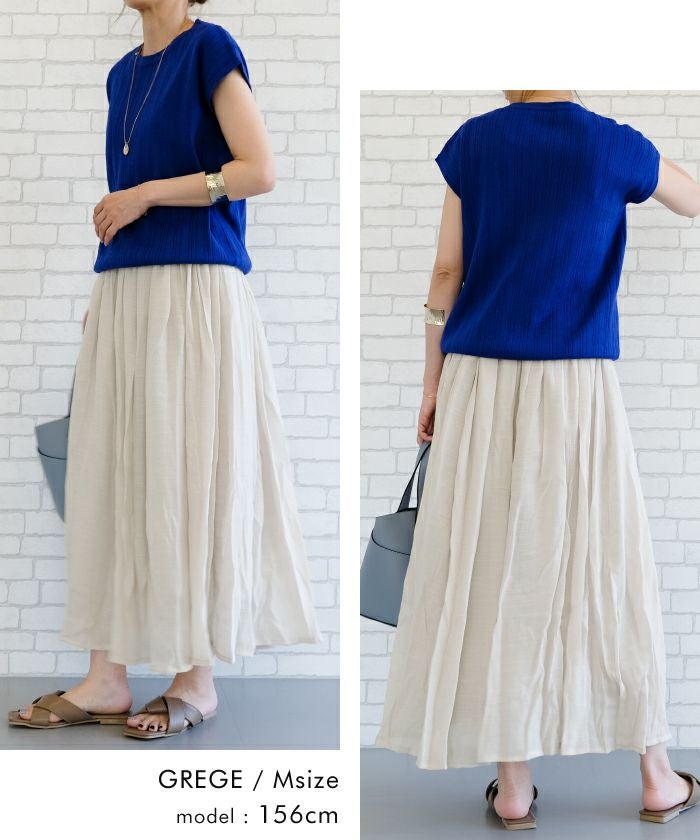 • 軽やかな素材感が涼し気なウエストフリルギャザースラブスカート
