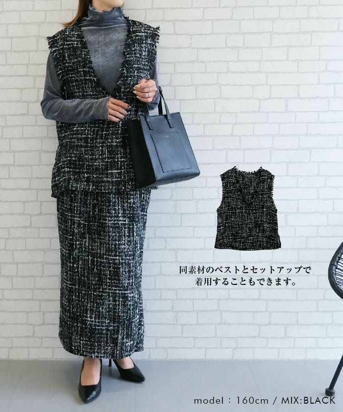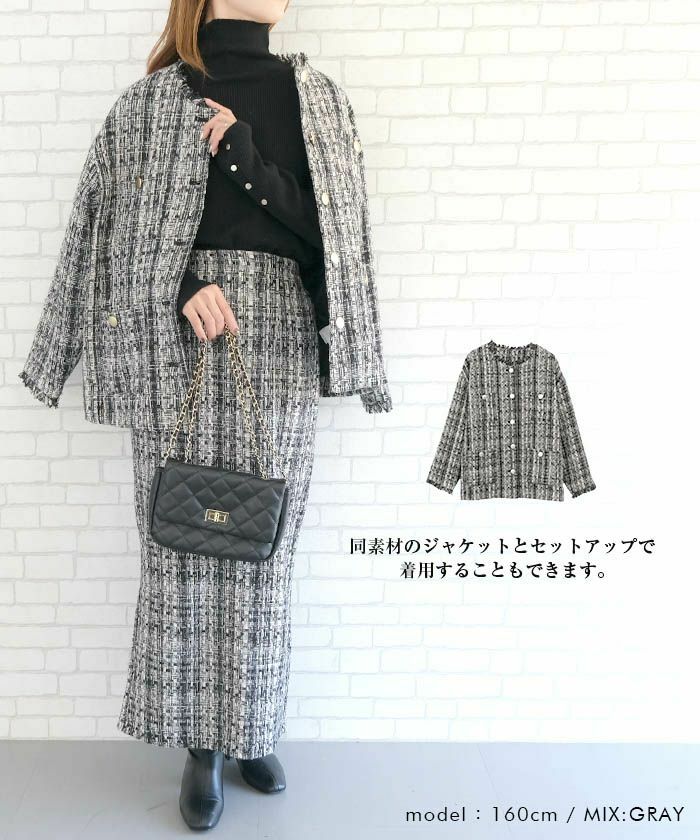 送料無料 【セットアップ可】ツイードハイウエストタイトスカート 春 秋 冬 M | アクアガレージ aquagarage