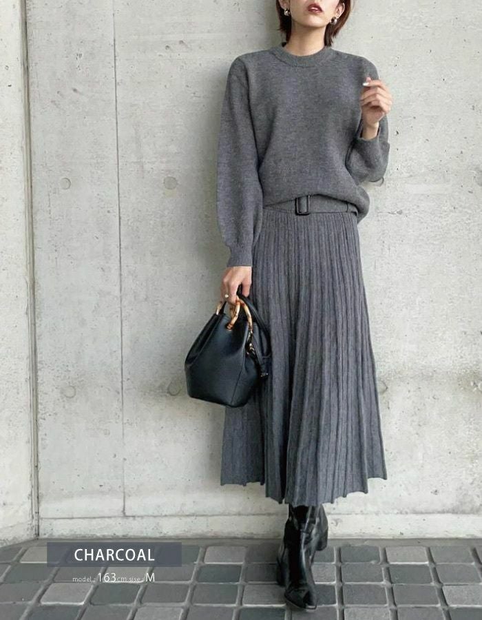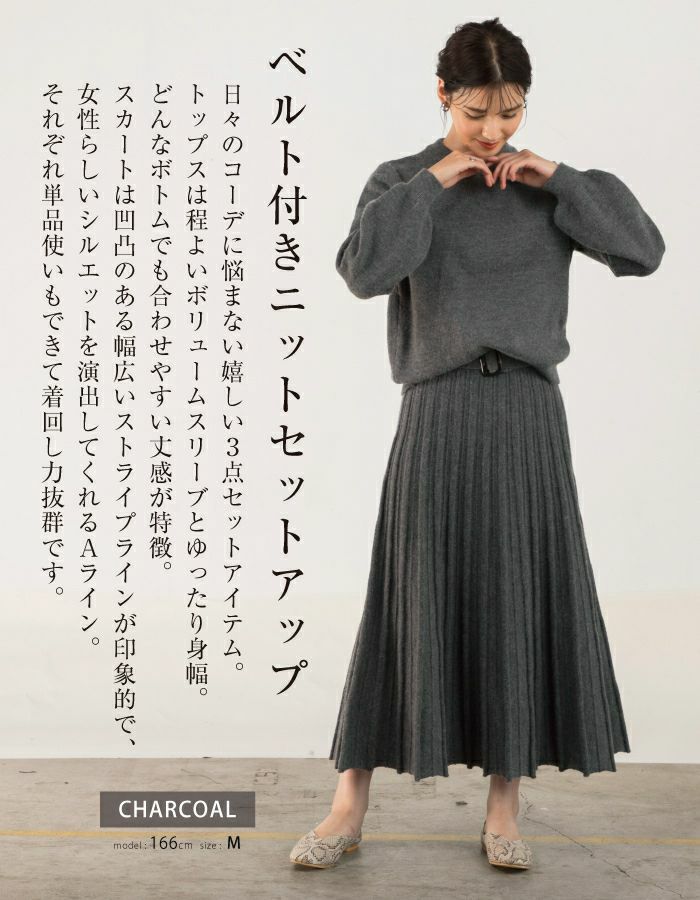 日々のコーデに悩まない、嬉しいトップス・スカート・ベルトの3点セットアイテム。