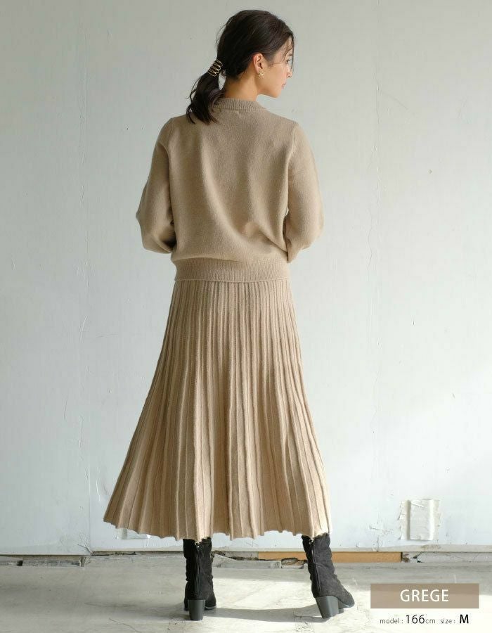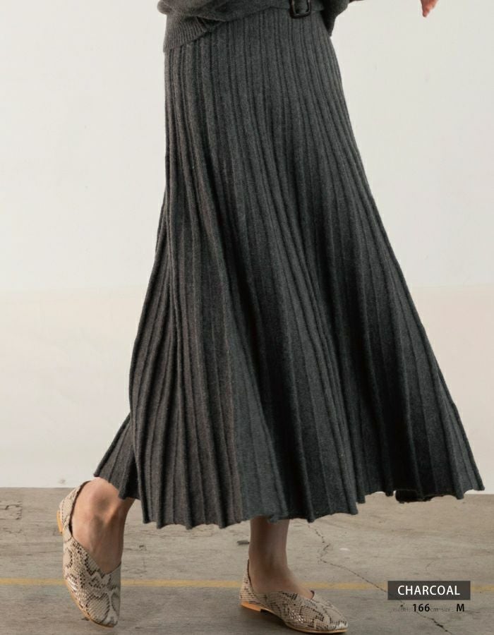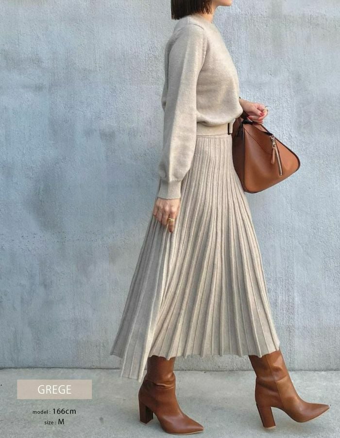 スカートは凹凸のある編地で表現された幅広のストライプラインがポイント。