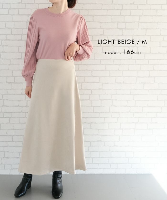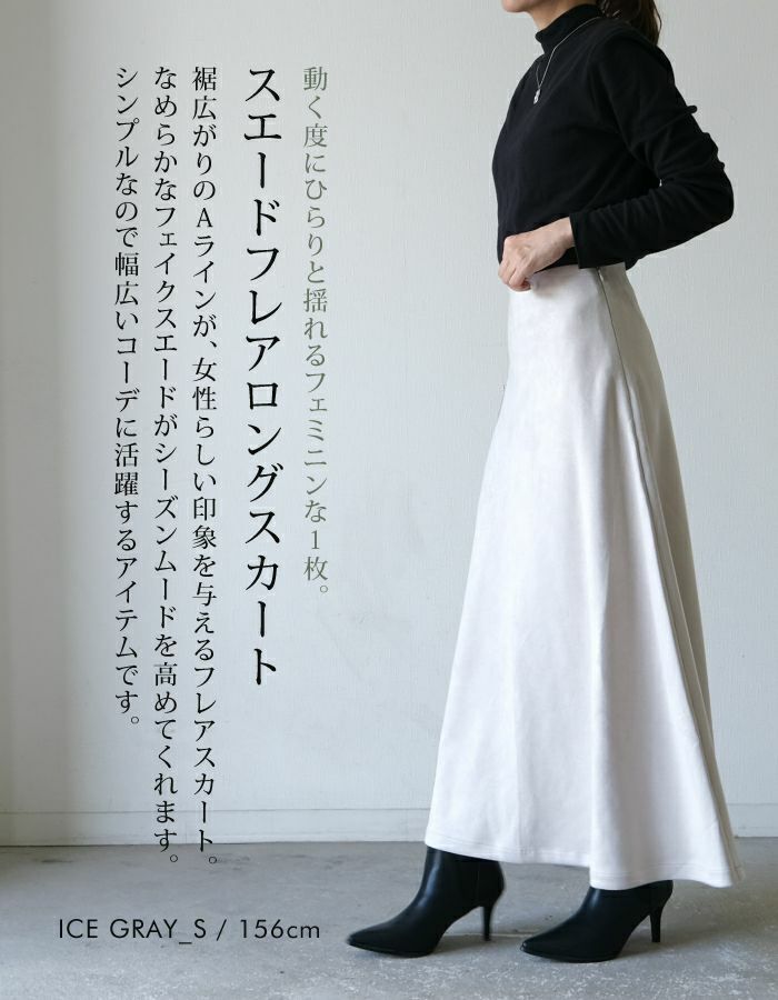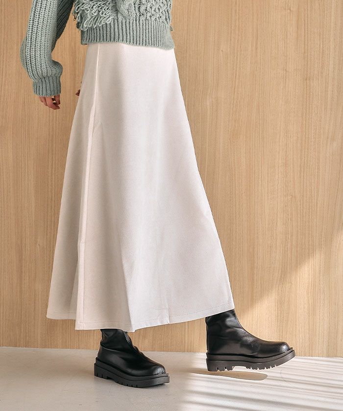 • 動く度にひらりと揺れるフェミニンな1枚!スエードフレアロングスカート