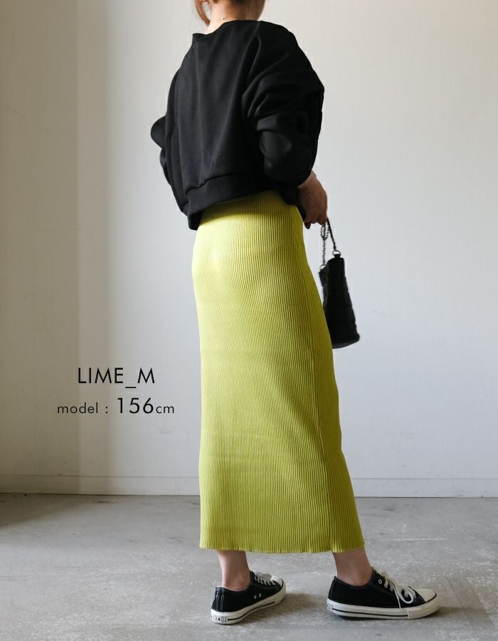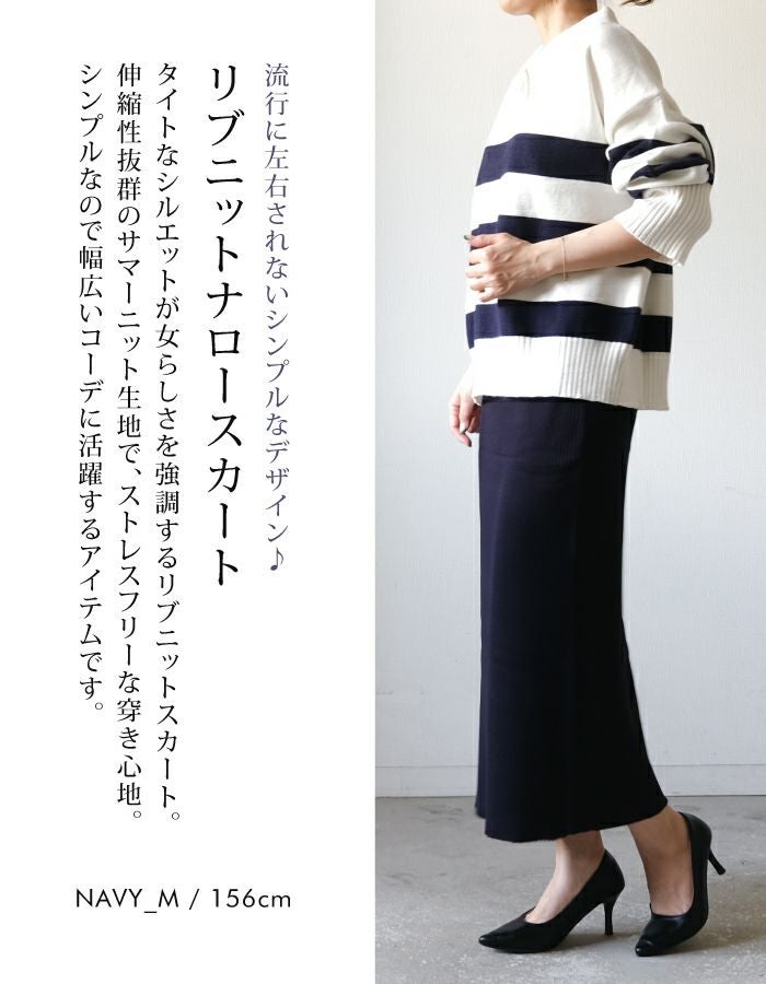 タイトなシルエットが女らしさを強調するリブニットスカート。 伸縮性抜群のサマーニット生地で、ストレスフリーな穿き心地。 シンプルなので幅広いコーデに活躍するアイテムです。