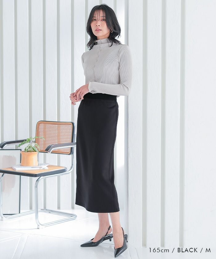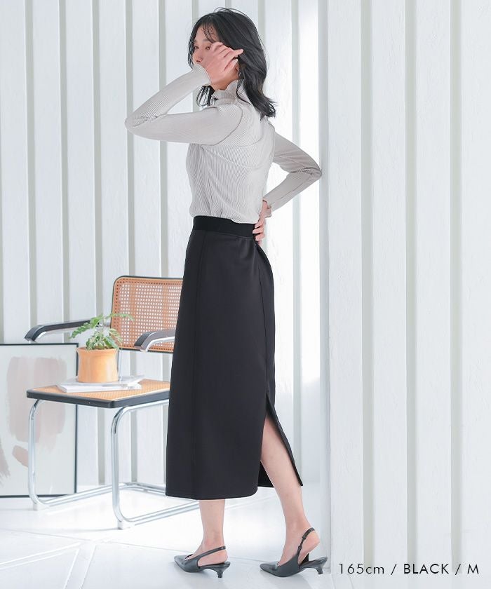 後ろスリット入りで動きやすさも兼ね備え、長時間の着用も快適。