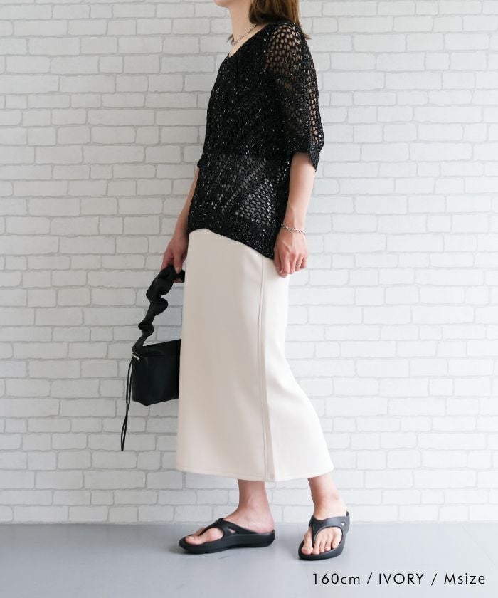 カジュアルときれいめのバランスが絶妙なスウェット素材のナローマキシスカート。