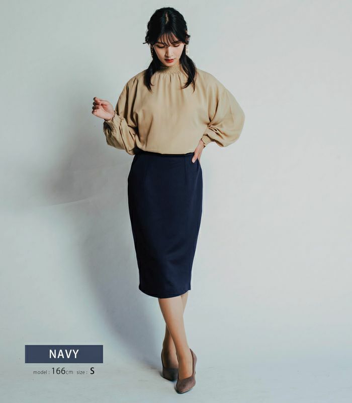 • 伸縮性とふくらみのある柔らかい素材は、まるでパジャマのような着心地。長時間穿いても疲れない、ストレスフリーなタイトスカート。ウエスト後ろはゴム仕様で動きやすく、片側は便利なポケット付き。オフィスワークにはもちろんリモートワークにも使える優秀な一枚です。