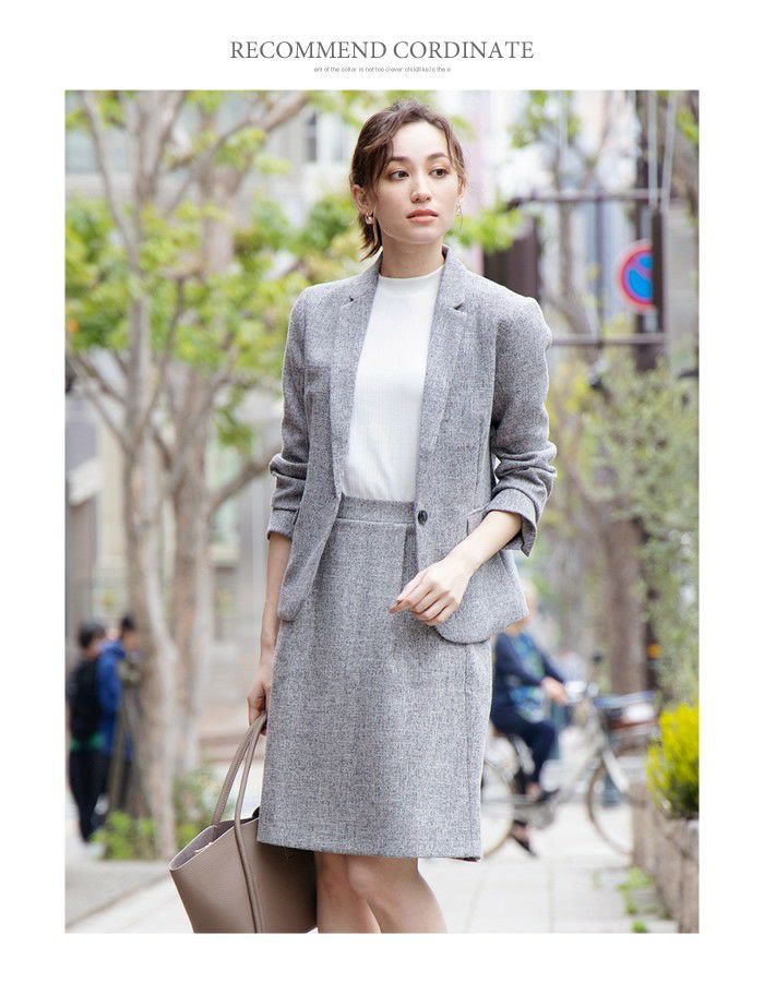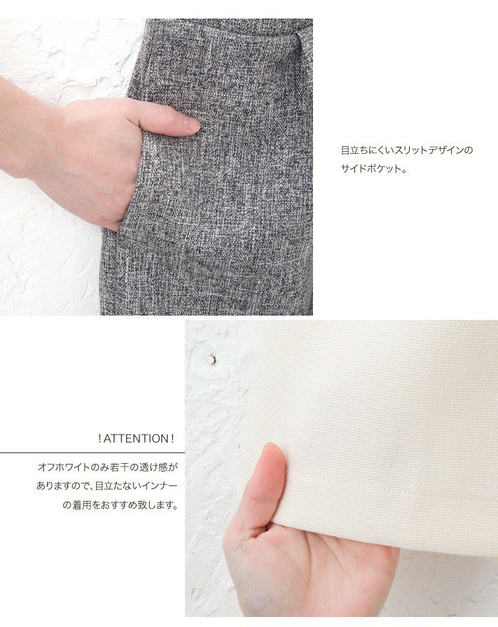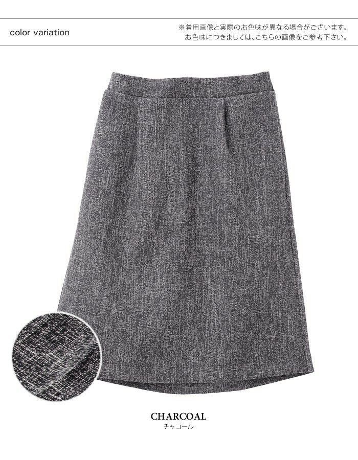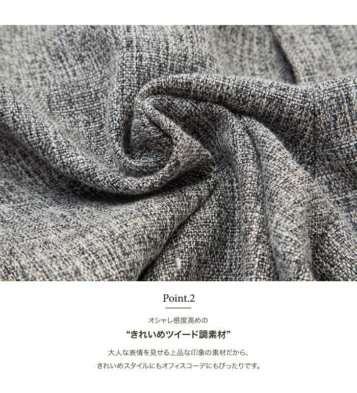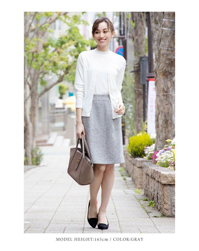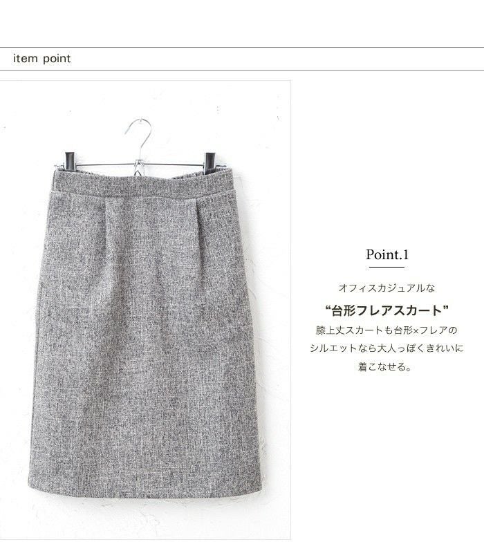 • 上品なツイード素材のきれいめスカートはオフィススタイルにも使える