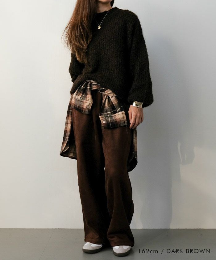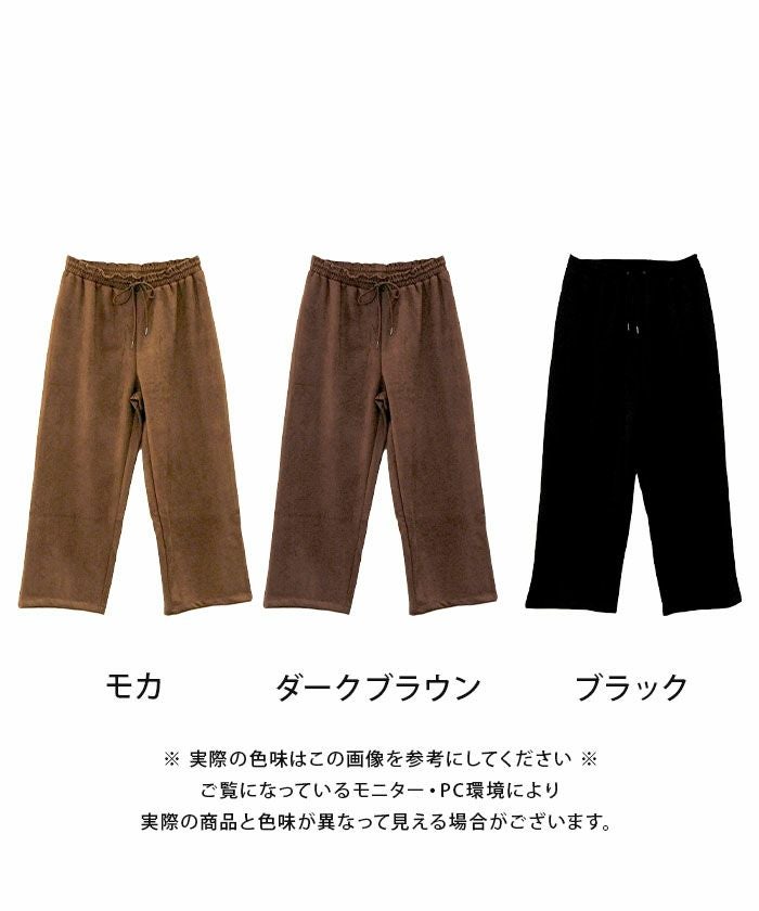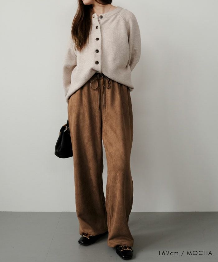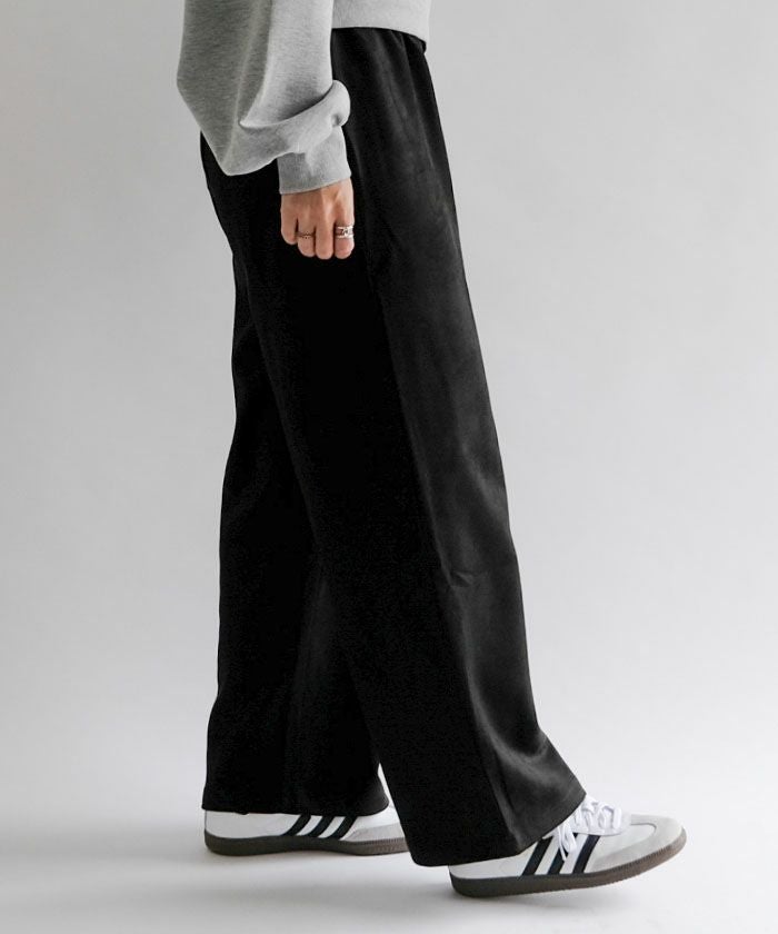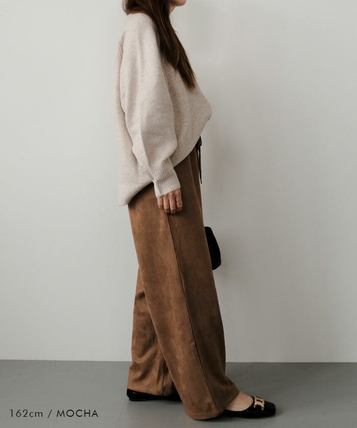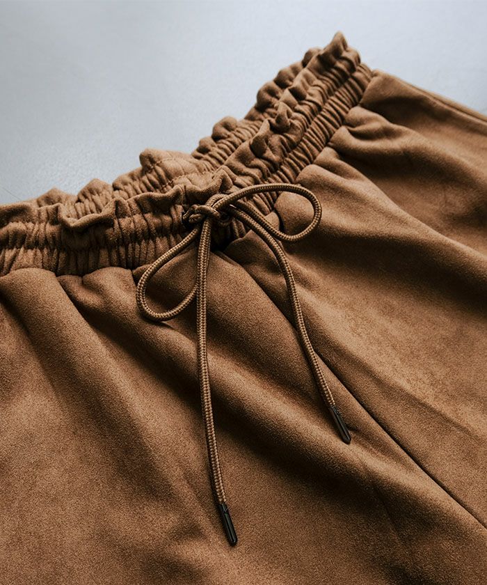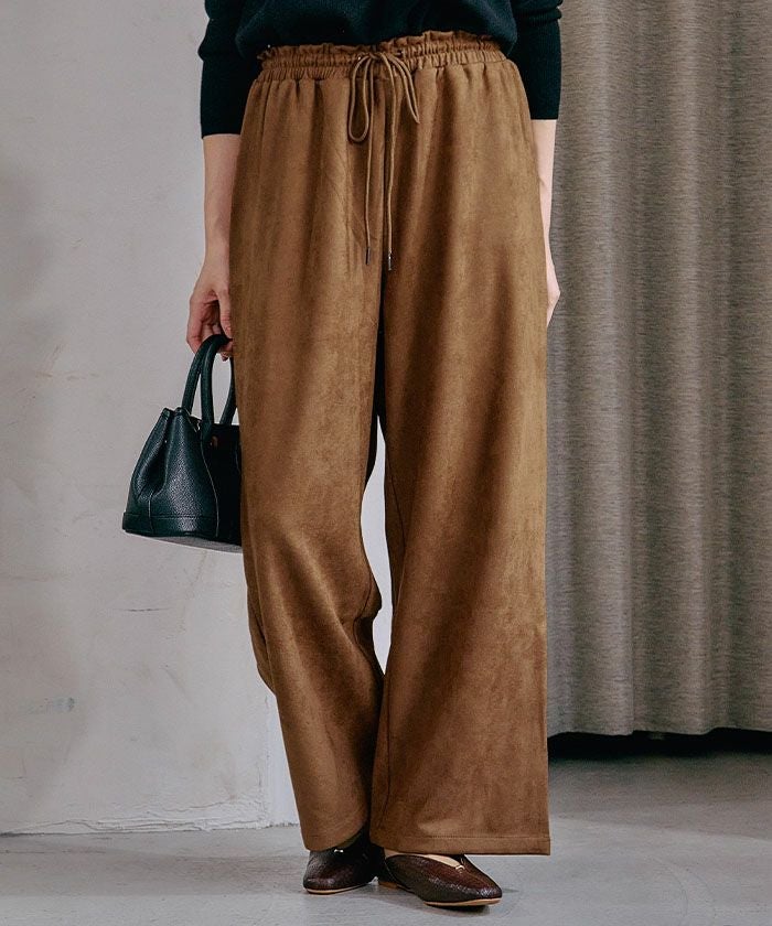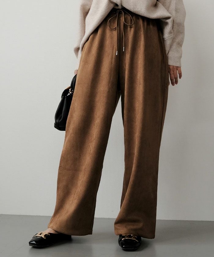 上品な光沢としっとりとした手触りが魅力の「カットスエードイージーパンツ」。