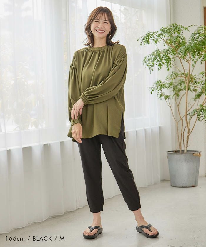 送料無料 ウエストフリルギャザースラブパンツ レディース 春 秋 M L ≪ゆうメール便配送30・代引不可≫| アクアガレージ aquagarage
