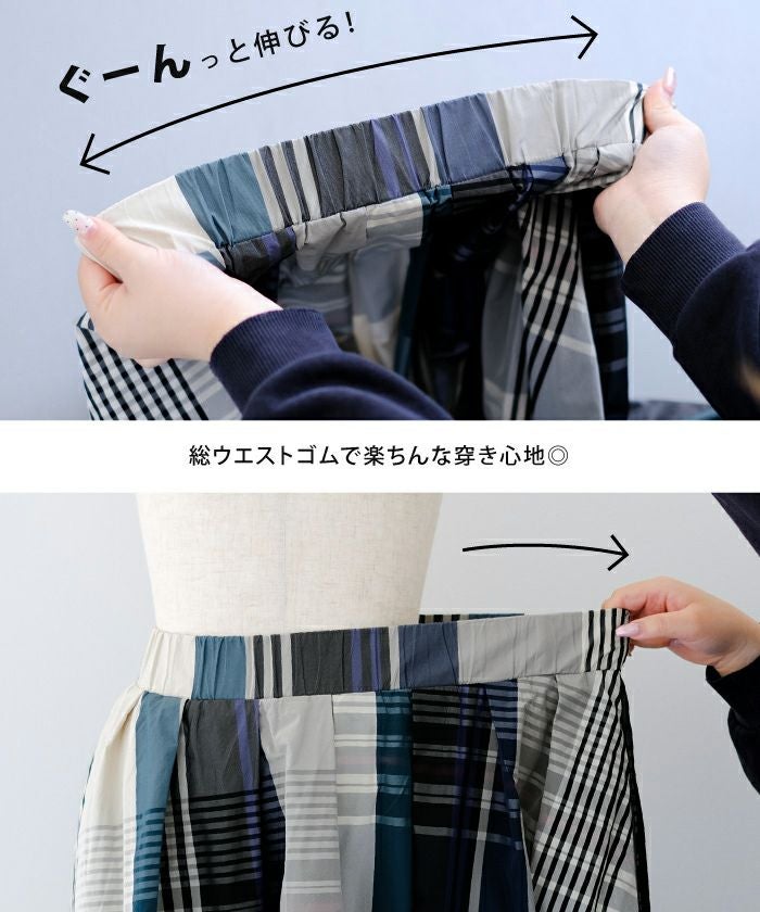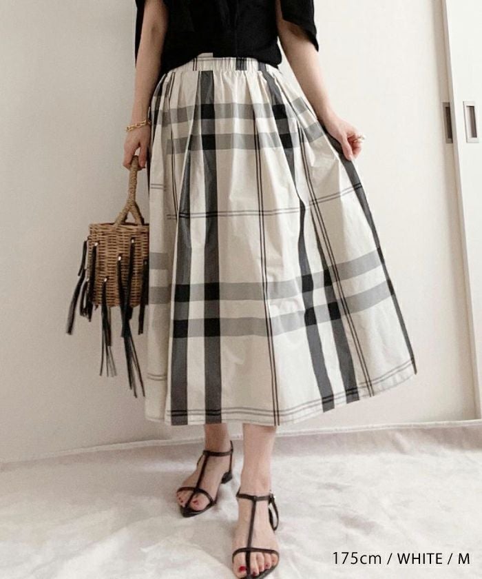 送料無料 チェック柄ウエストタックフレアスカート レディース 春 秋 夏 M L ≪ゆうメール便配送30・代引不可≫ | アクアガレージ aquagarage