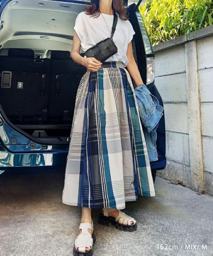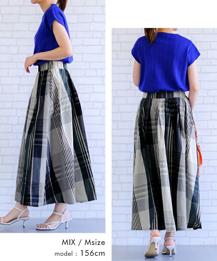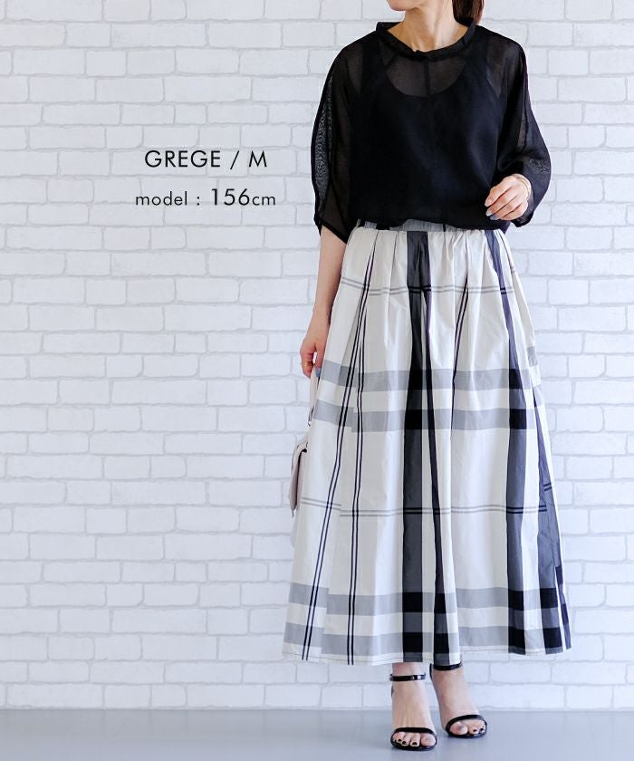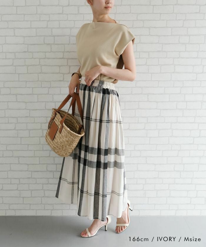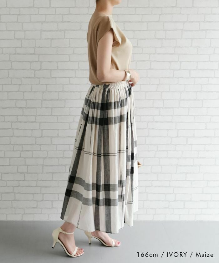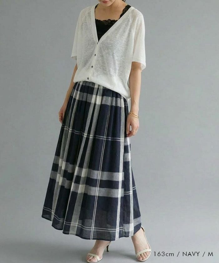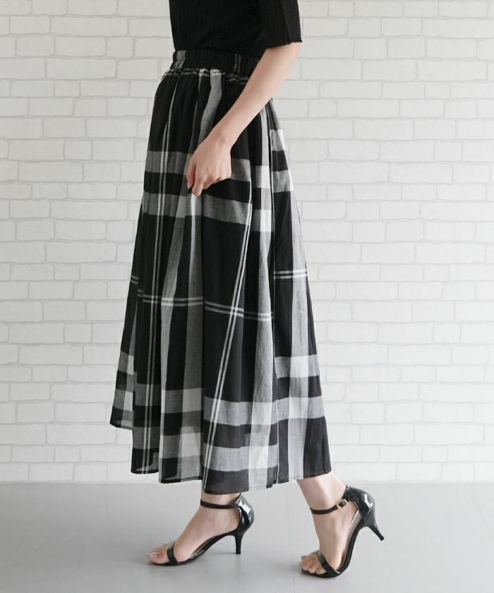 【色追加】チェックガーゼギャザースカート 春 夏 秋 M L アクアガレージ aquagarage