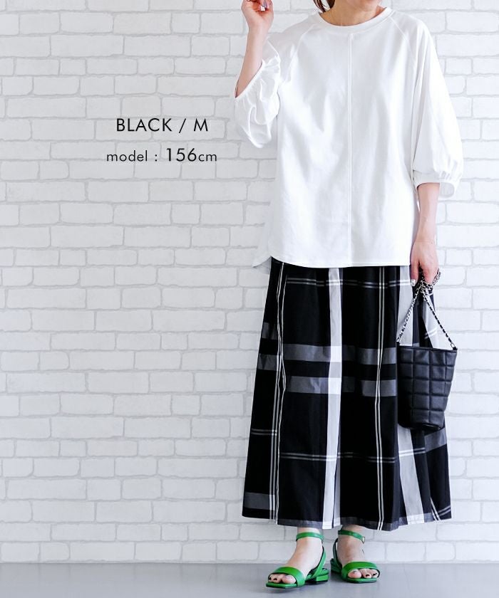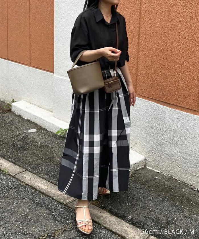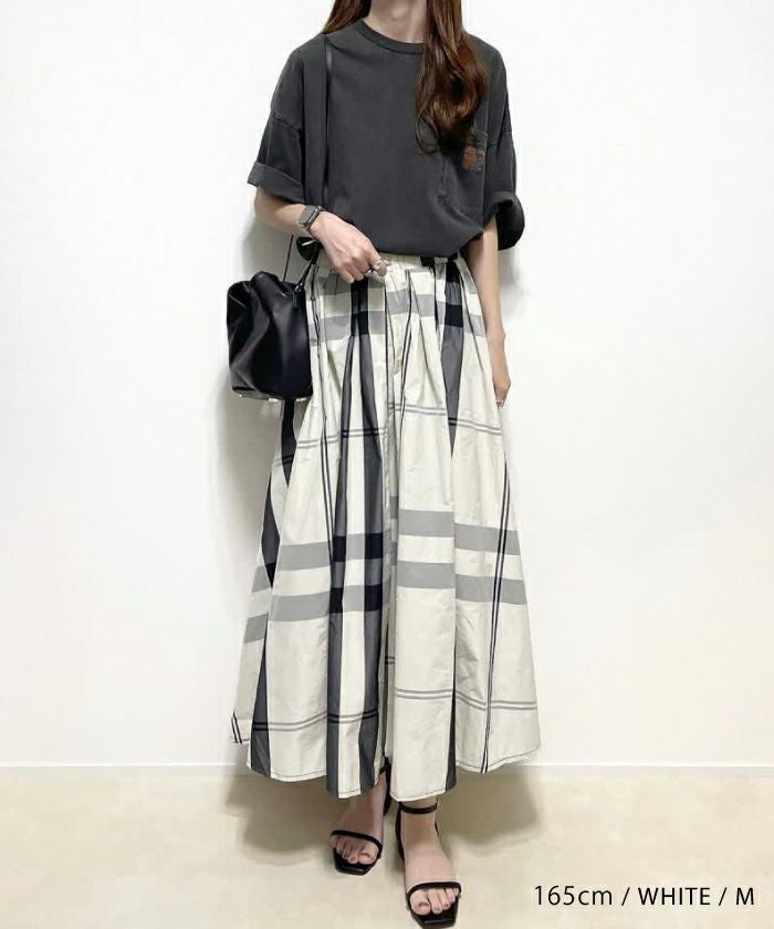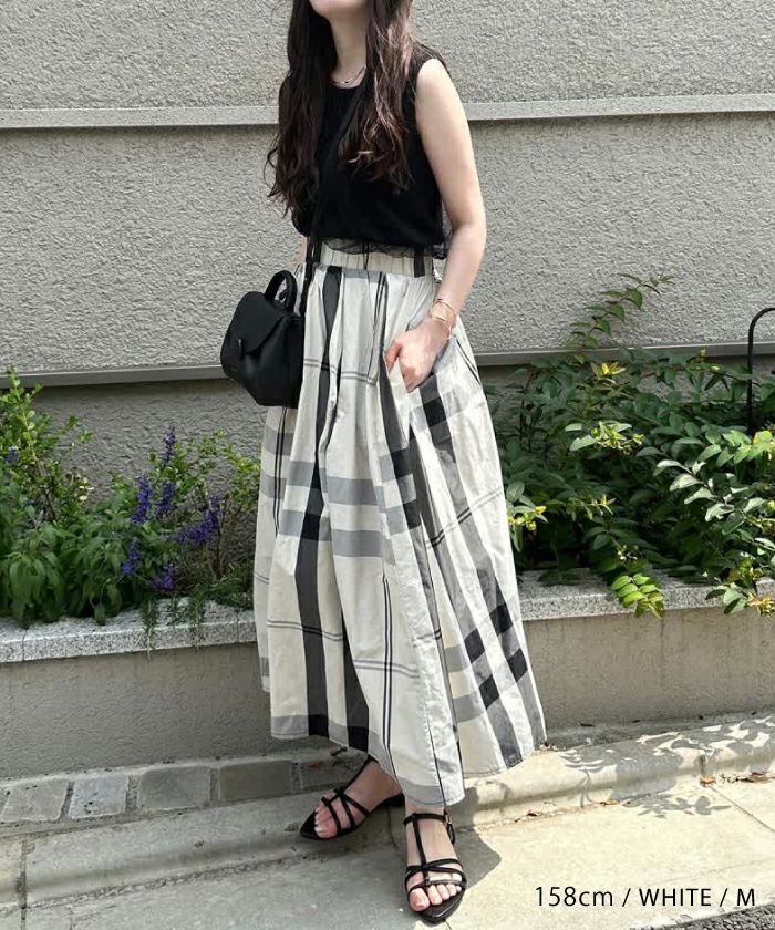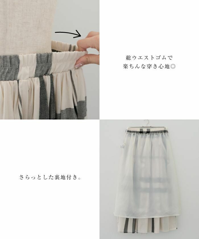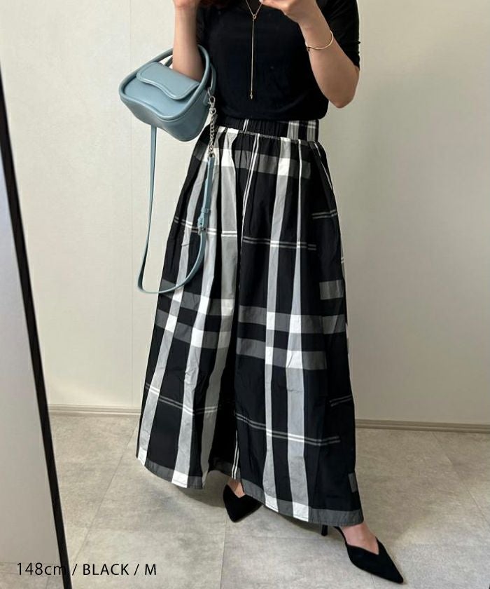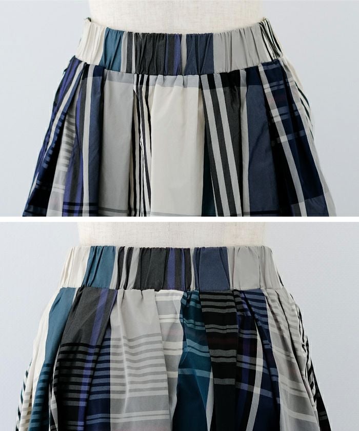 【色追加】チェックガーゼギャザースカート 春 夏 秋 M L アクアガレージ aquagarage