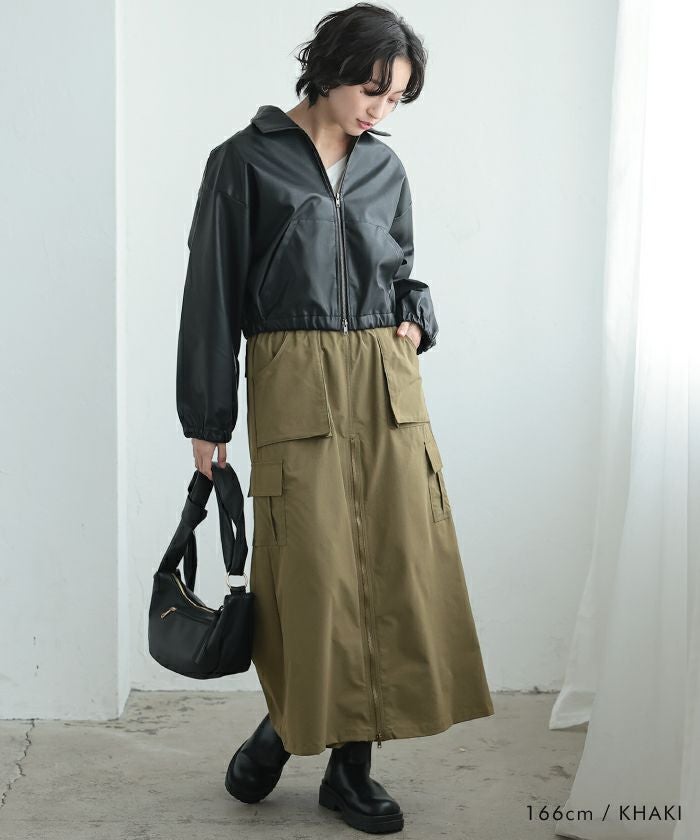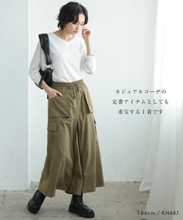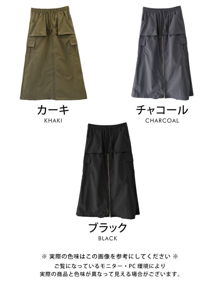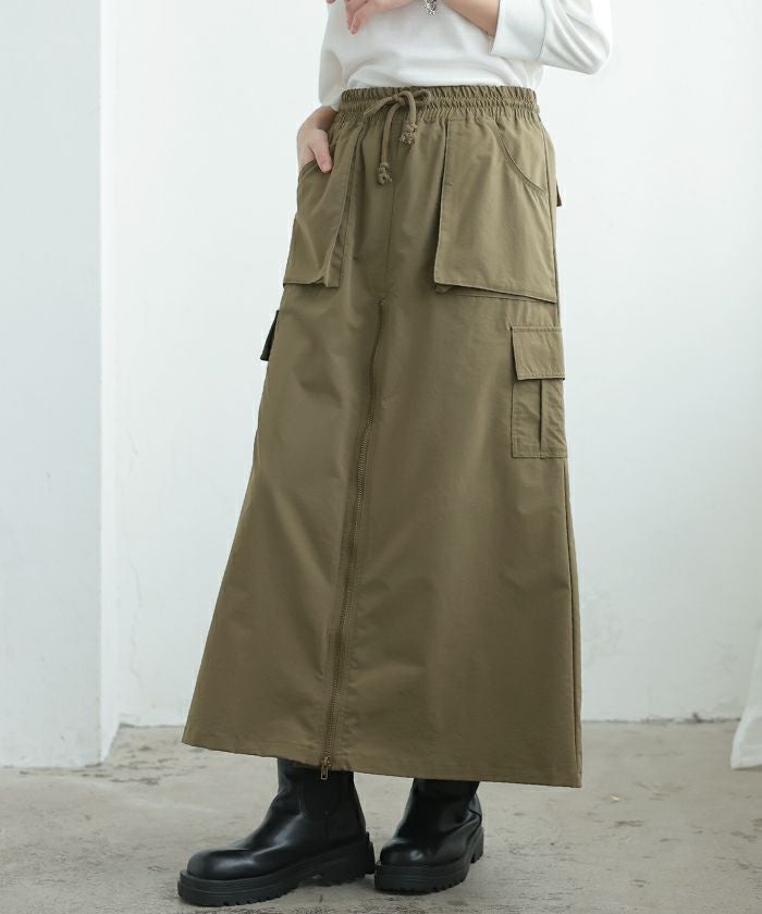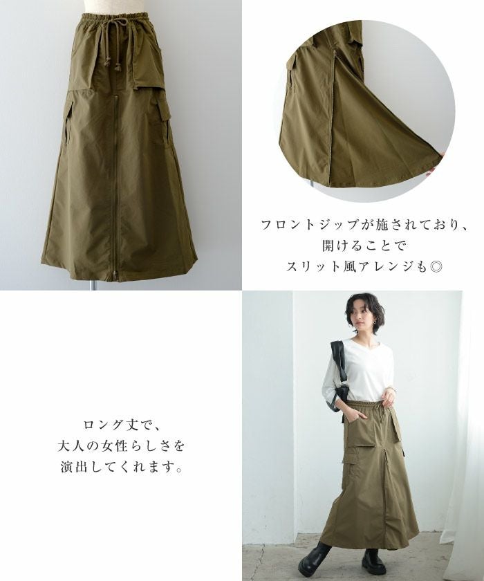 送料無料 前ZIPロングカーゴスカート レディース 春 夏 秋 冬 |≪ゆうメール便配送30・代引不可≫ アクアガレージ aquagarage