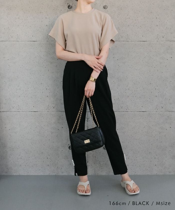 送料無料 パール付きテーパードパンツ 春 夏 秋 冬 M L |≪ゆうメール便配送20・代引不可≫アクアガレージ aquagarage