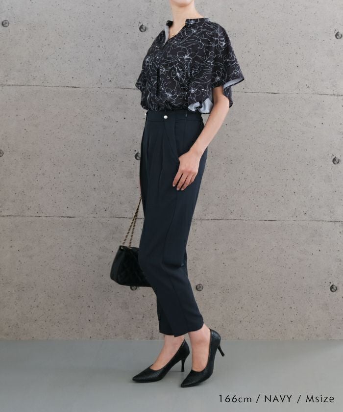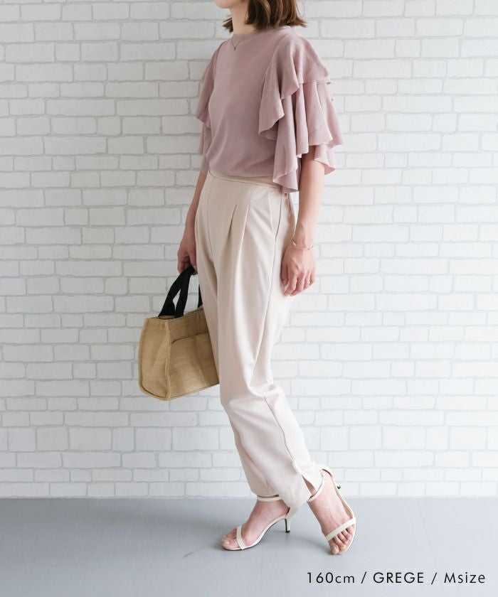 送料無料 ピンタックセミフレアパンツ レディース 春 夏 秋 S M L テーパードパンツ ≪ゆうメール便配送20・代引不可≫ | アクアガレージ aquagarage