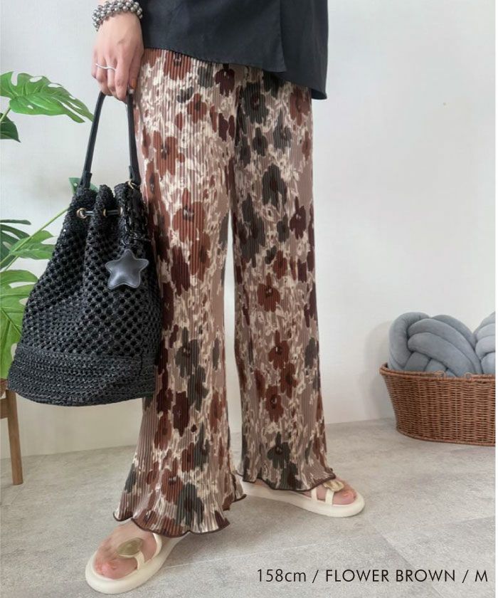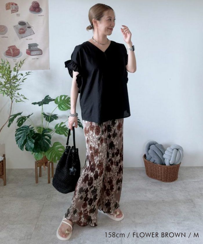 送料無料 花柄ワイドパンツ レディース 春 夏 秋 M ≪ゆうメール便配送30・代引不可≫ |アクアガレージ aquagarage